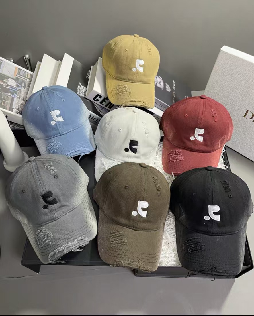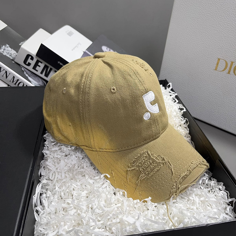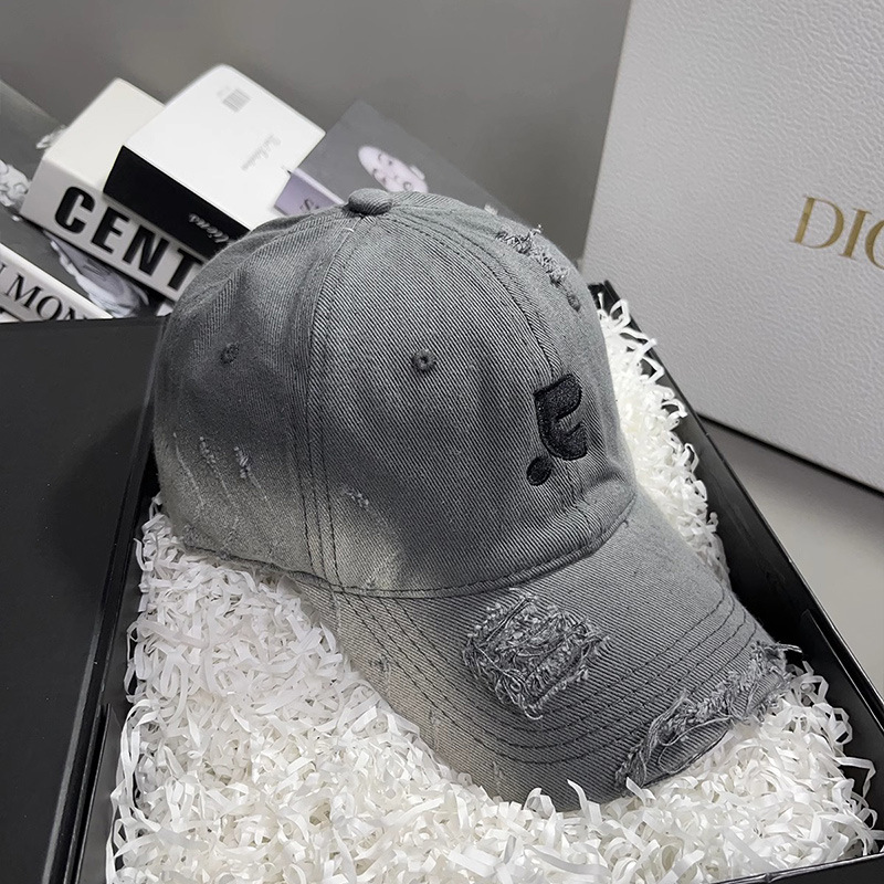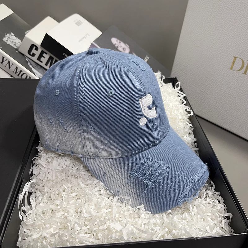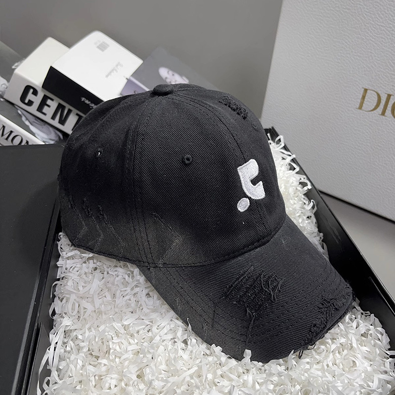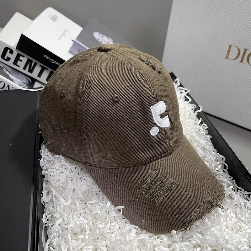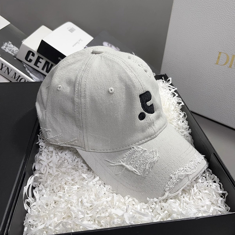 레바와 같은 스타일의 미국식 챙넓은 야구모자 여성용 여름용 데미지 레터링 자수 큰 머리용 얼굴 작아보이는 데일리 캡스토어 가기