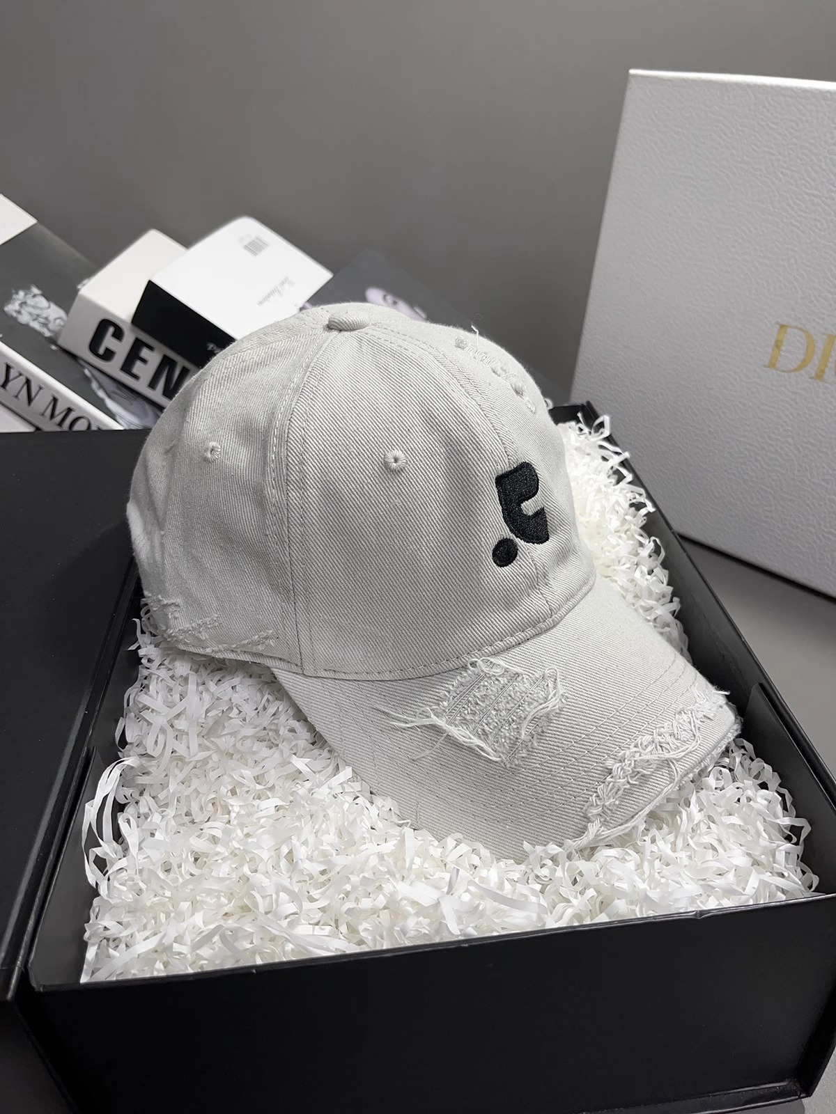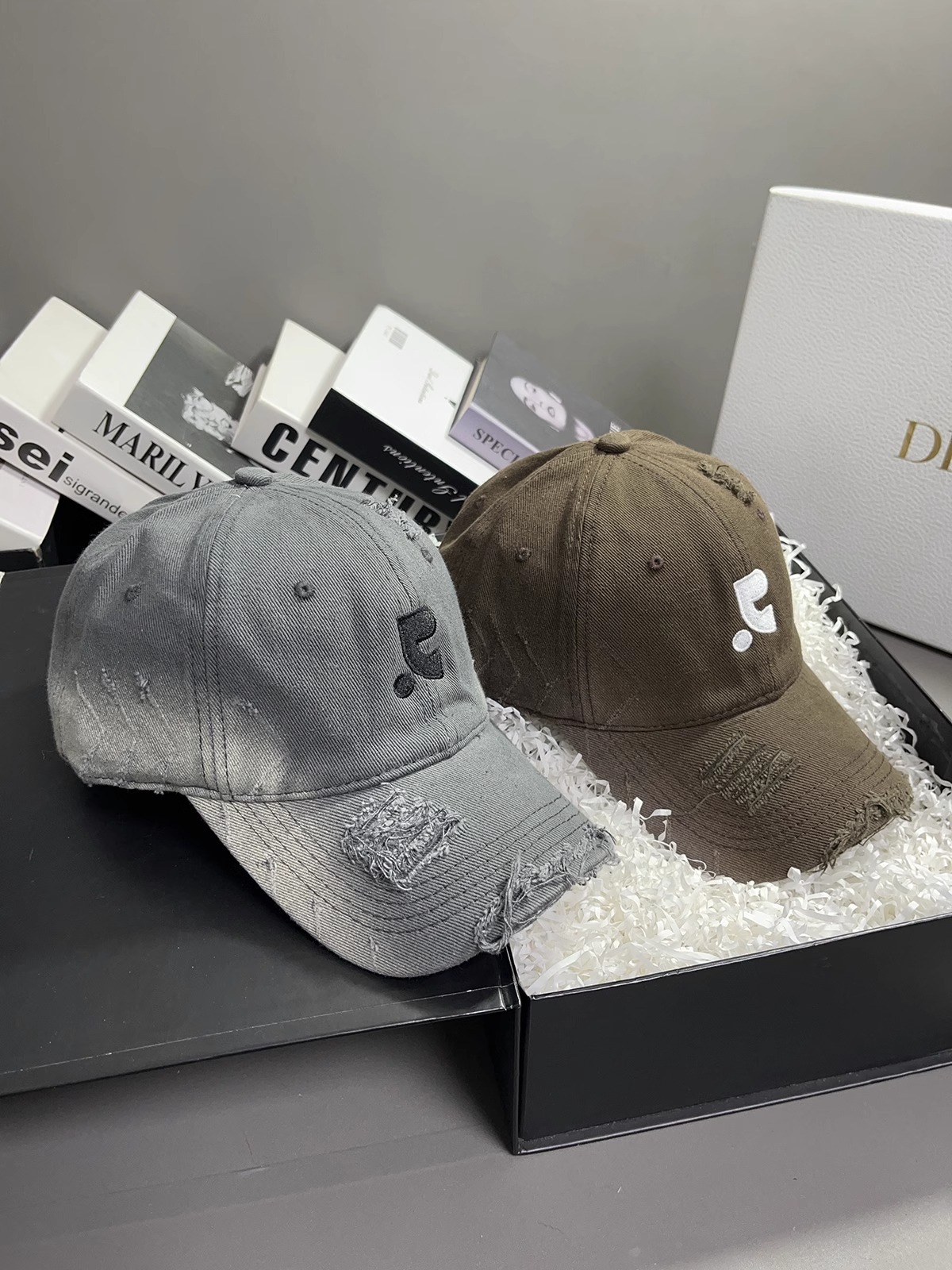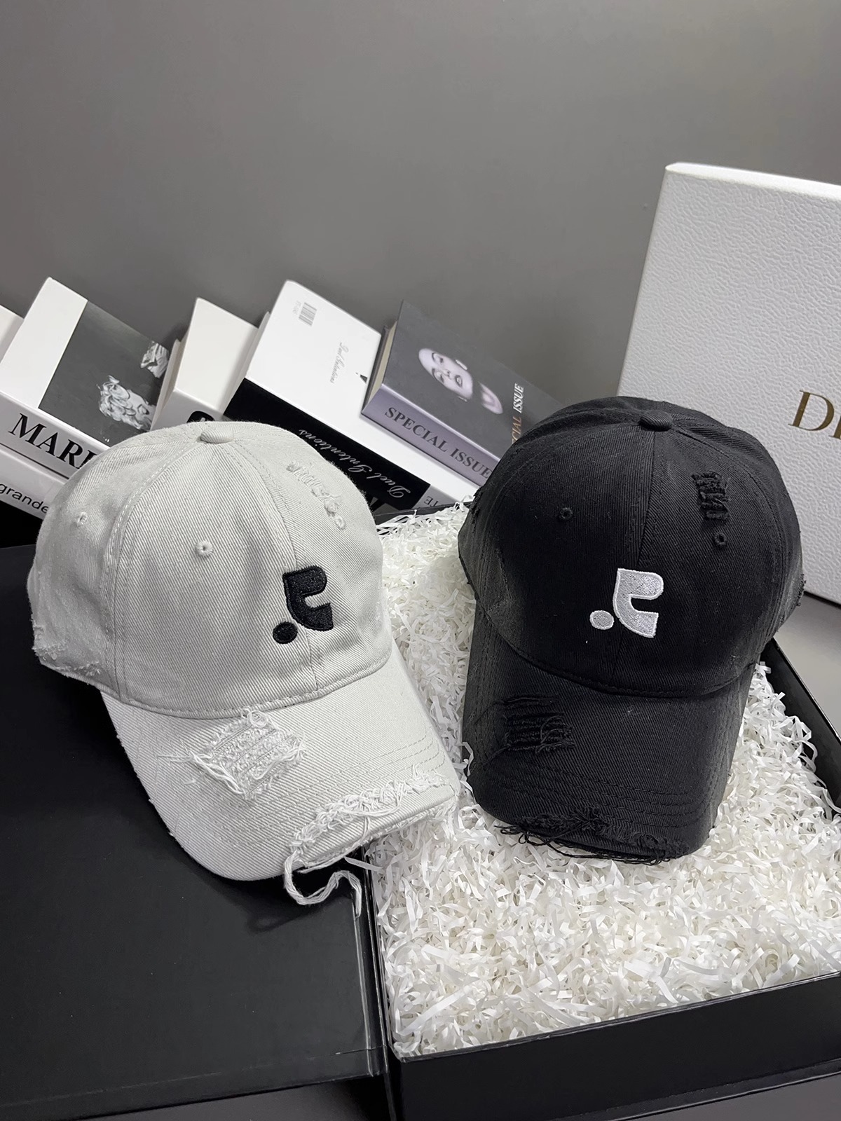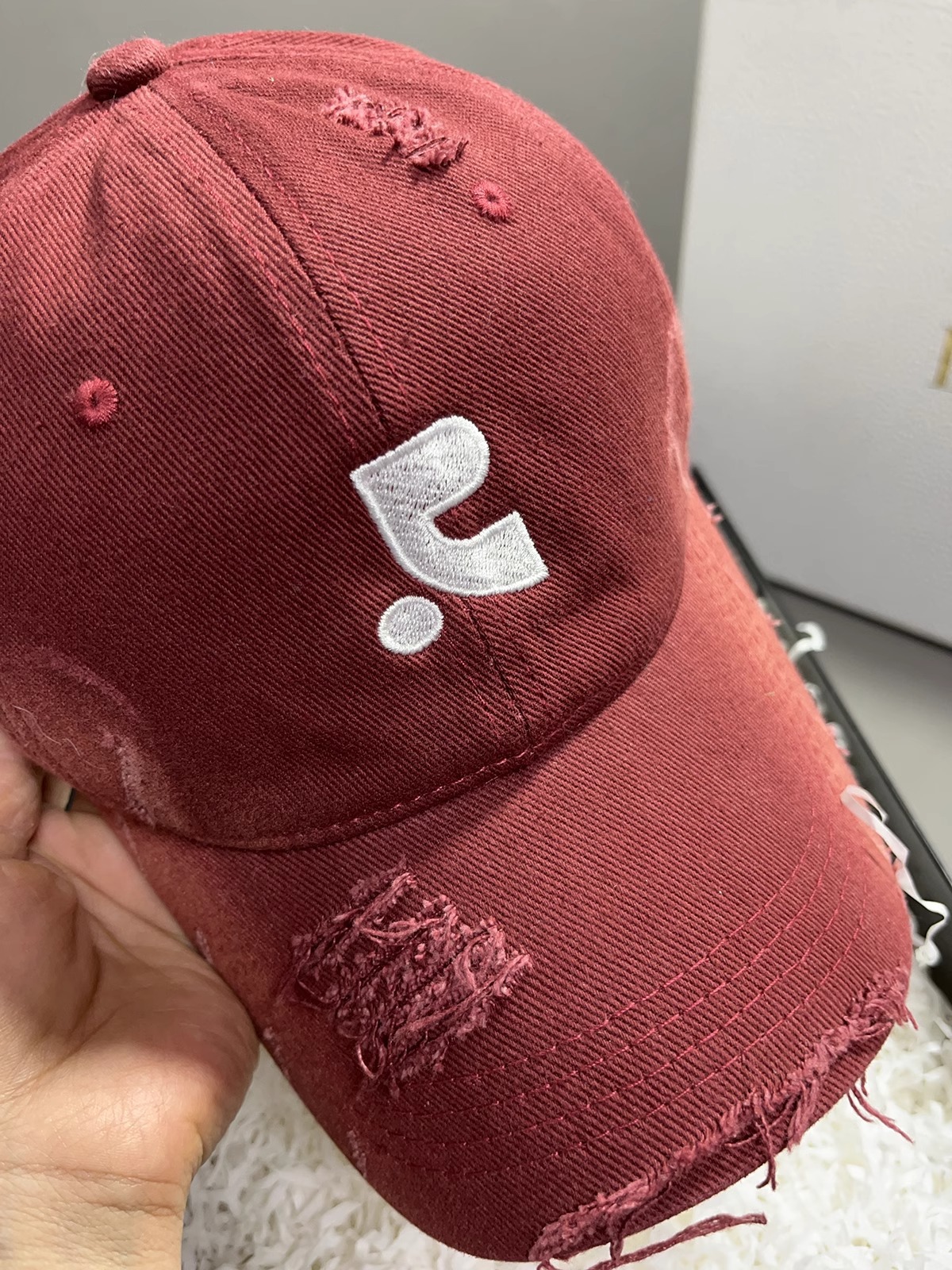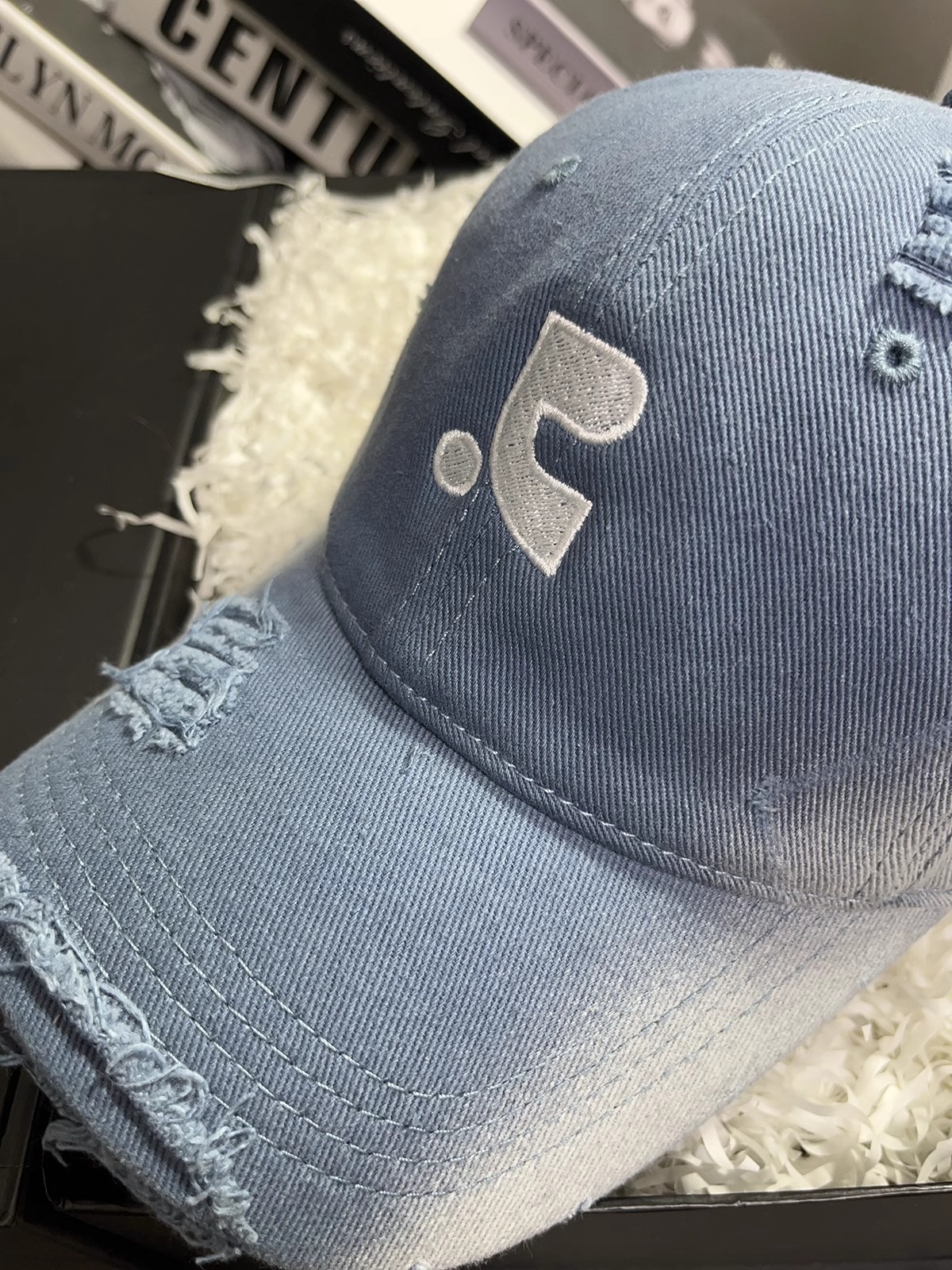 레바와 같은 스타일의 미국식 챙넓은 야구모자 여성용 여름용 데미지 레터링 자수 큰 머리용 얼굴 작아보이는 데일리 캡스토어 가기