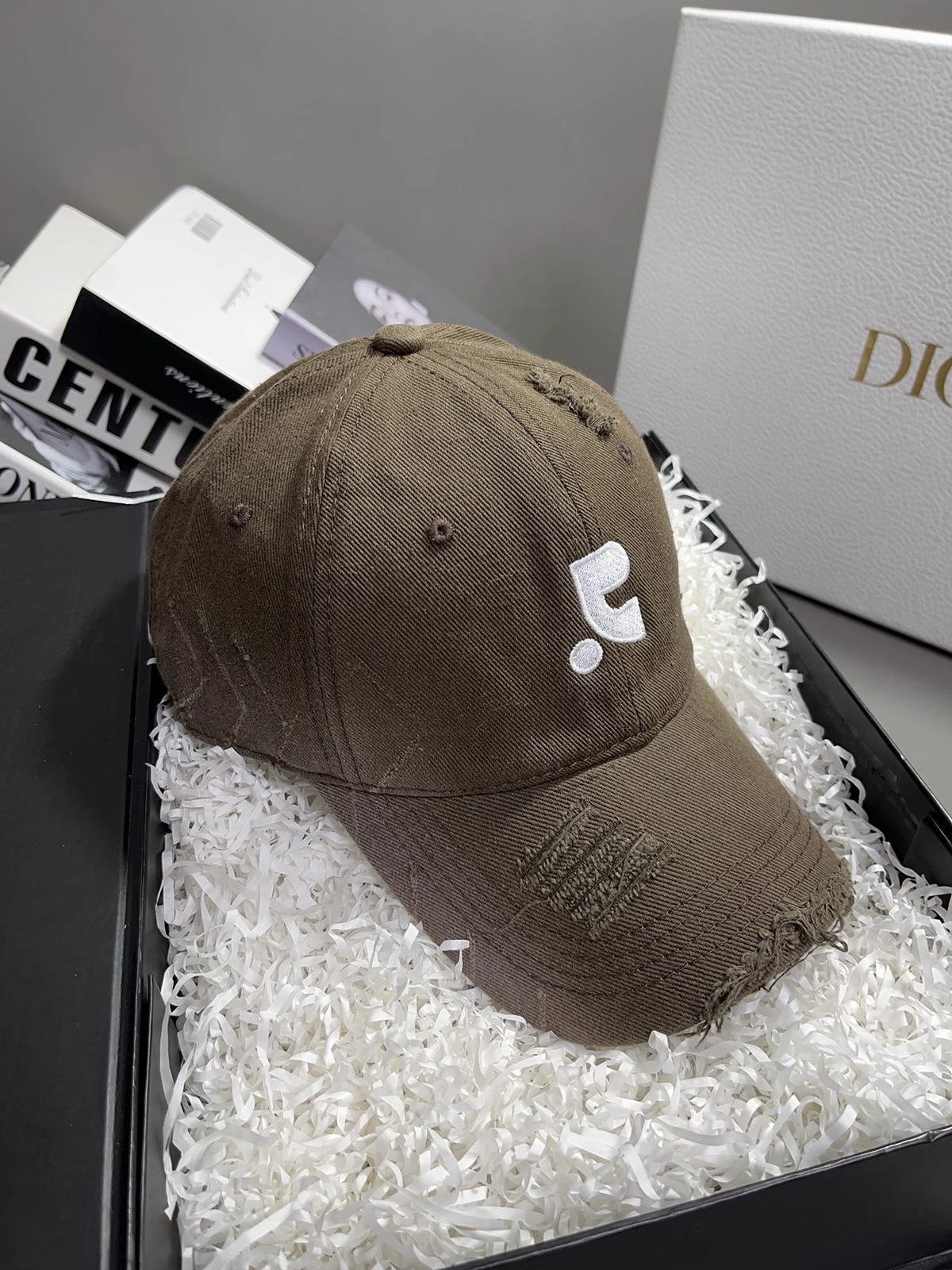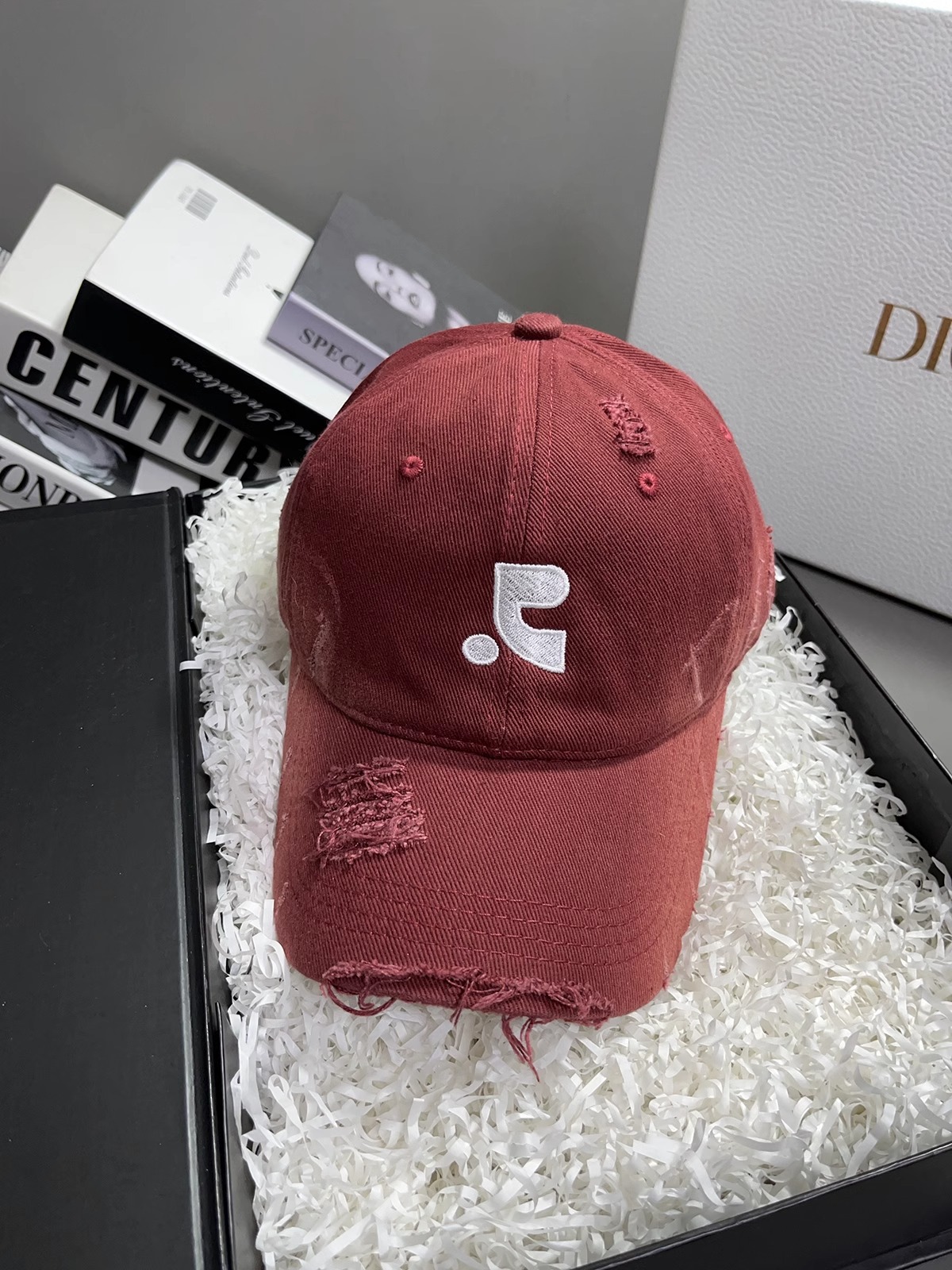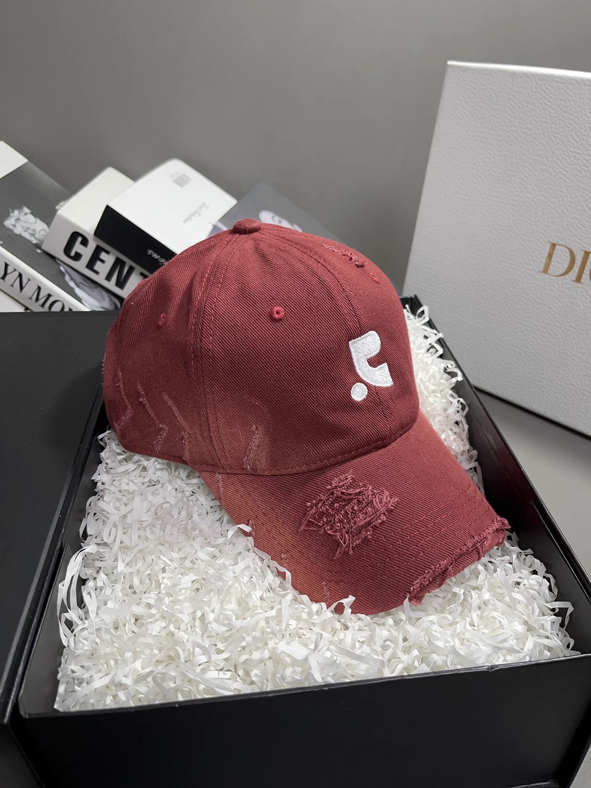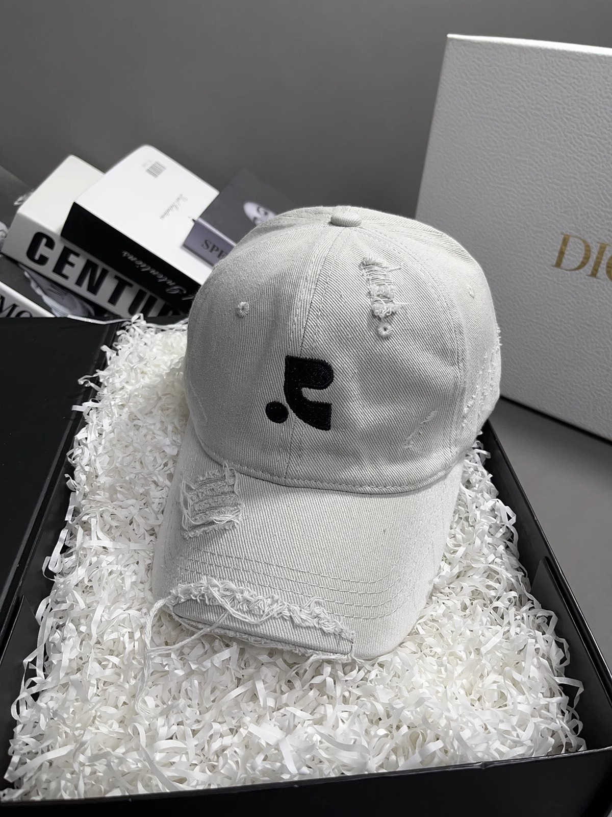 레바와 같은 스타일의 미국식 챙넓은 야구모자 여성용 여름용 데미지 레터링 자수 큰 머리용 얼굴 작아보이는 데일리 캡스토어 가기