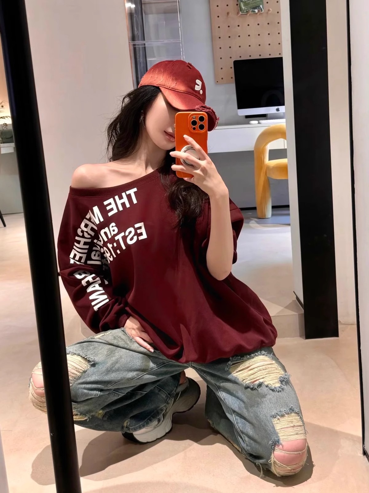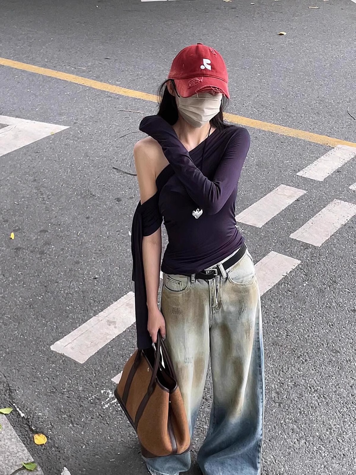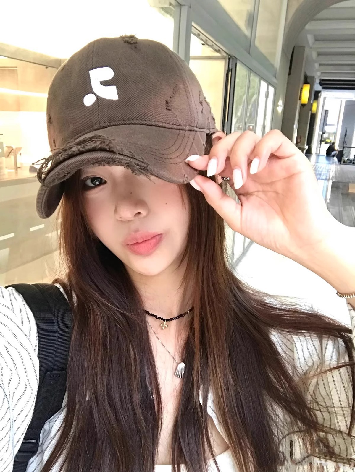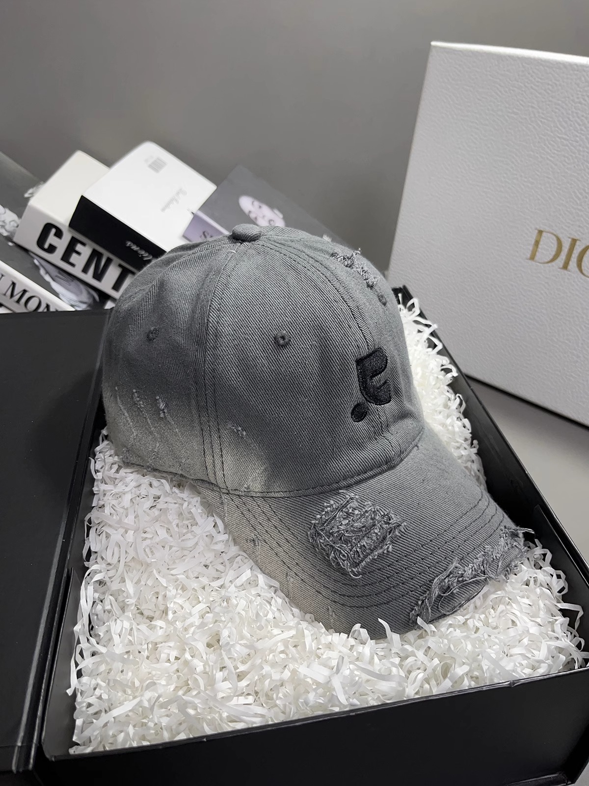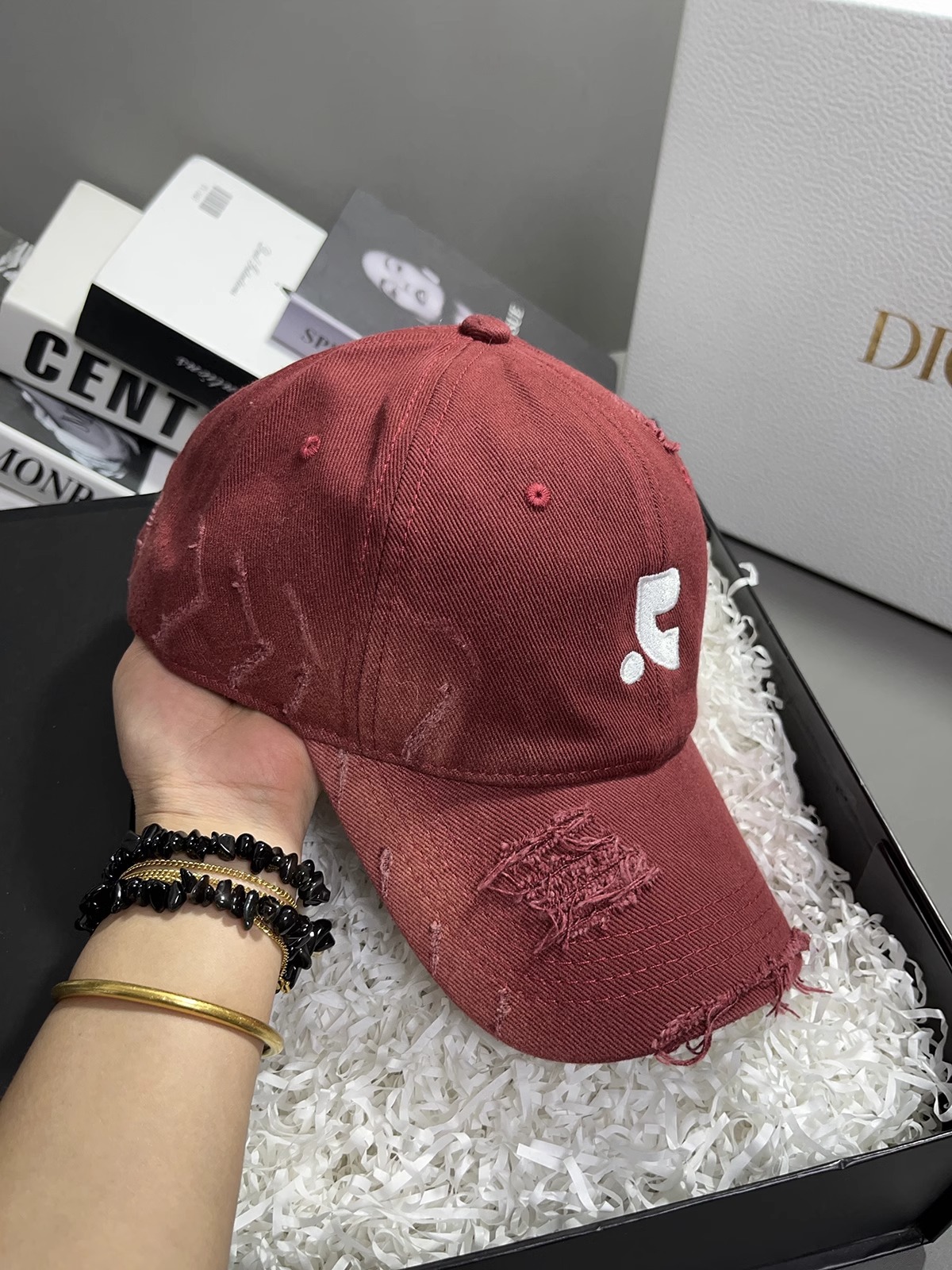 레바와 같은 스타일의 미국식 챙넓은 야구모자 여성용 여름용 데미지 레터링 자수 큰 머리용 얼굴 작아보이는 데일리 캡스토어 가기