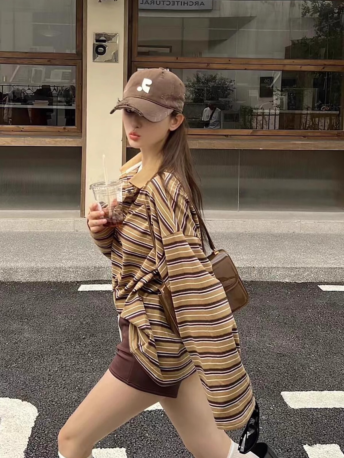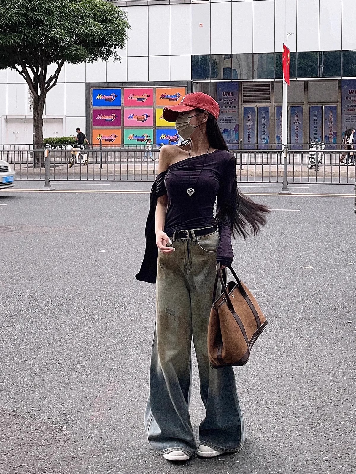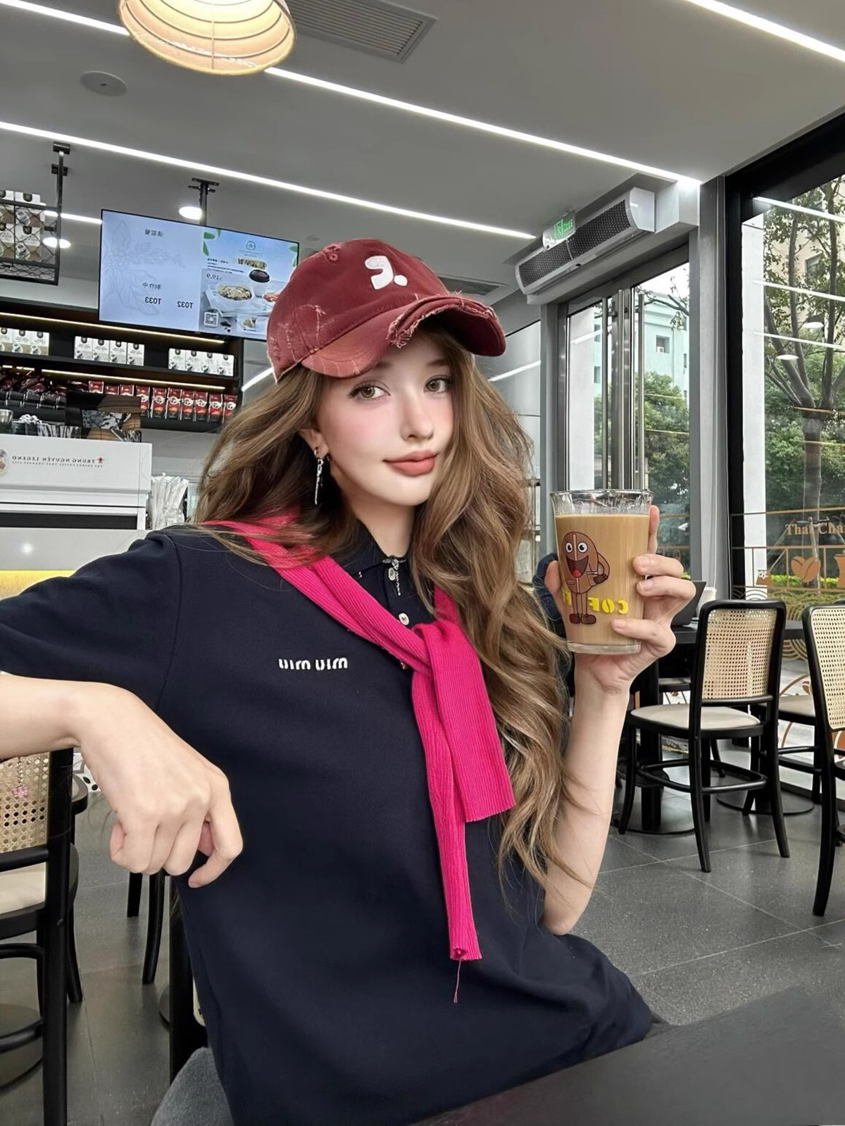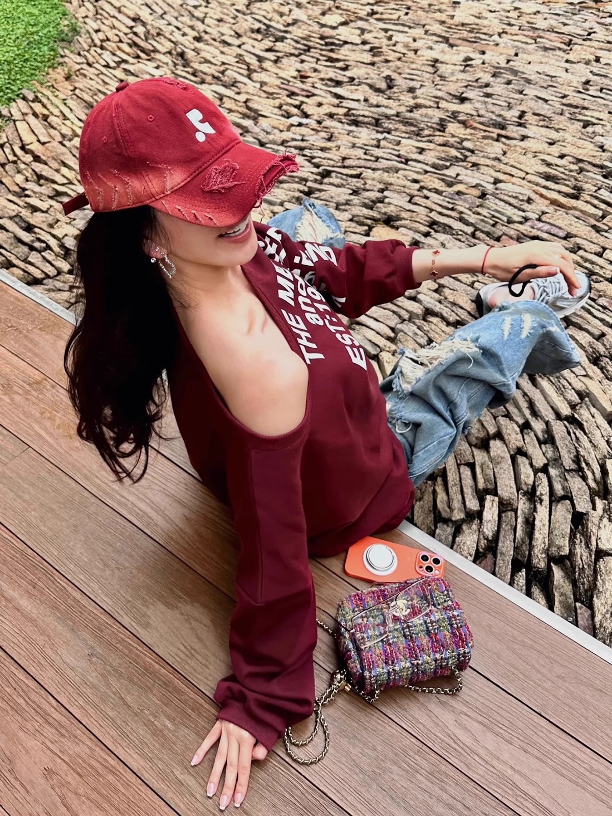 레바와 같은 스타일의 미국식 챙넓은 야구모자 여성용 여름용 데미지 레터링 자수 큰 머리용 얼굴 작아보이는 데일리 캡스토어 가기