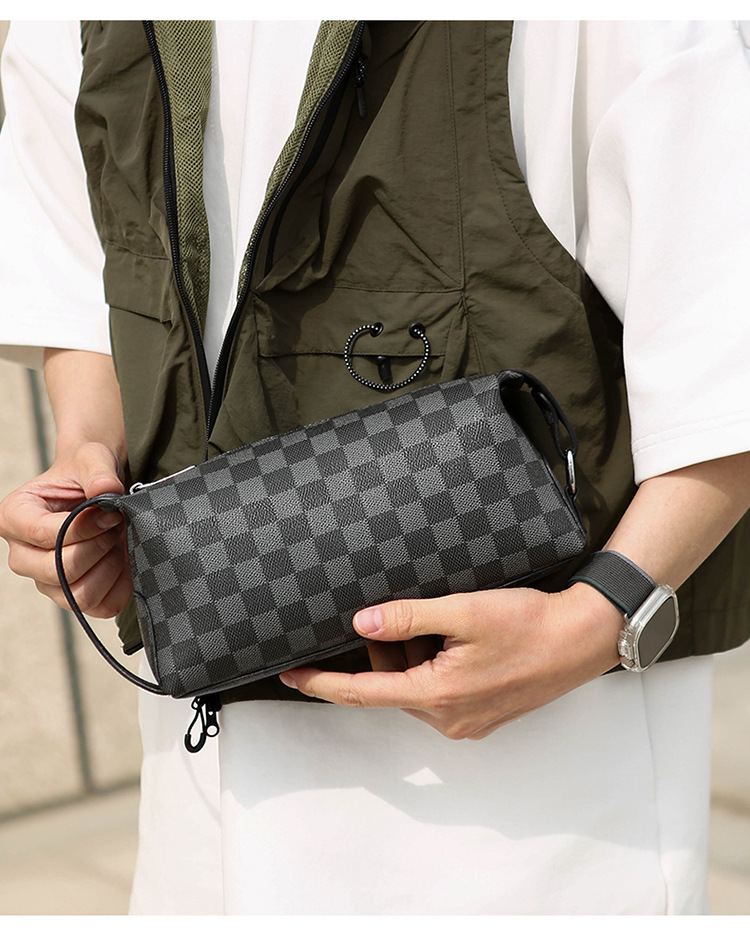 새로운 클러치 백 남성 유럽과 미국 격자 무늬 노안 남성 청소년 보관 가방 격자 무늬 캐주얼 실린더 트렌디 가방 휴대 전화 가방스토어 가기