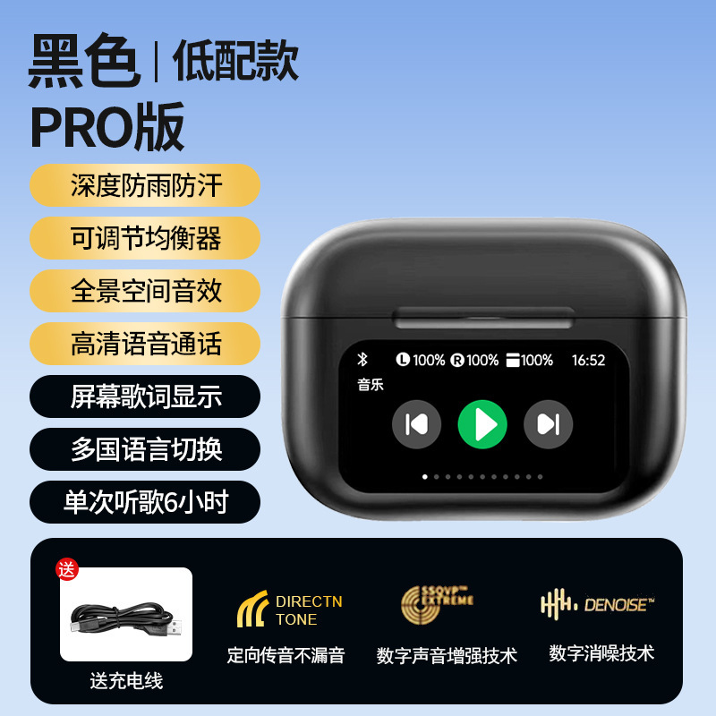 인기 5세대 화창북 a9pro 블루투스 이어폰, 노이즈 캔슬링, 초장시간 배터리, 컬러 스크린 터치 컨트롤, 무선 블루투스 5.4