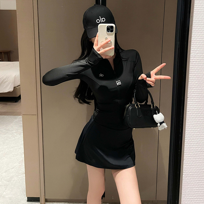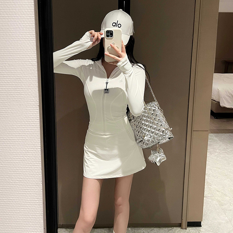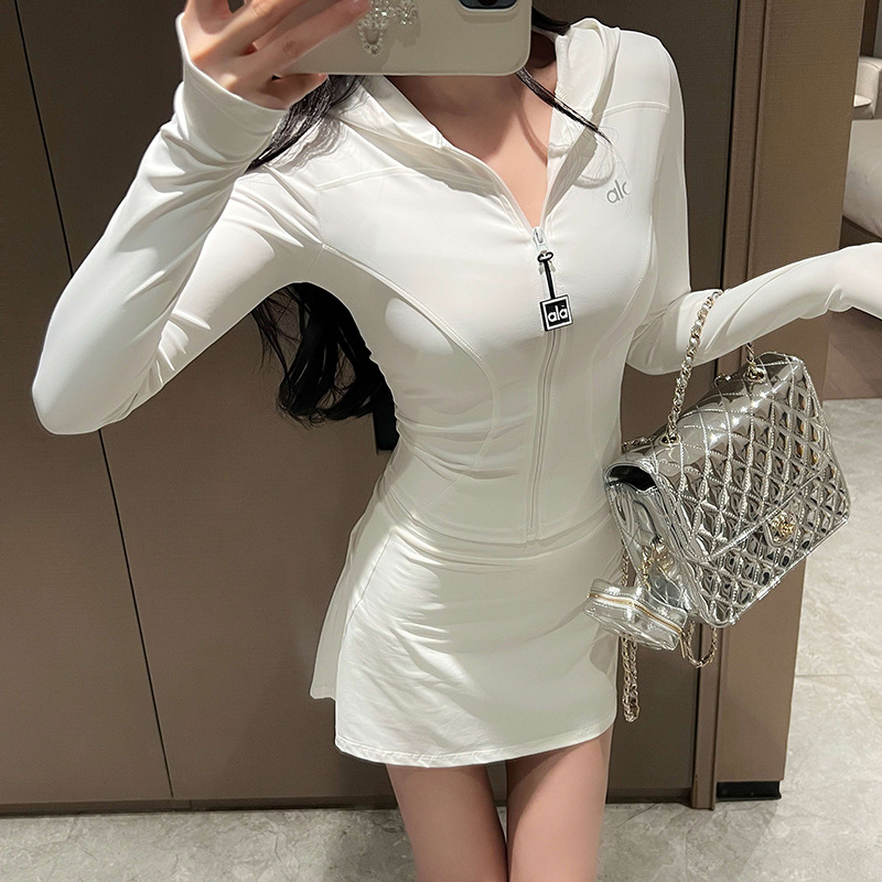 ALOMTLS 여성용 고품질 요가복 세트, 슬림핏 자외선 차단 스포츠 후드 재킷, 노출 방지 테니스 스커트 팬츠