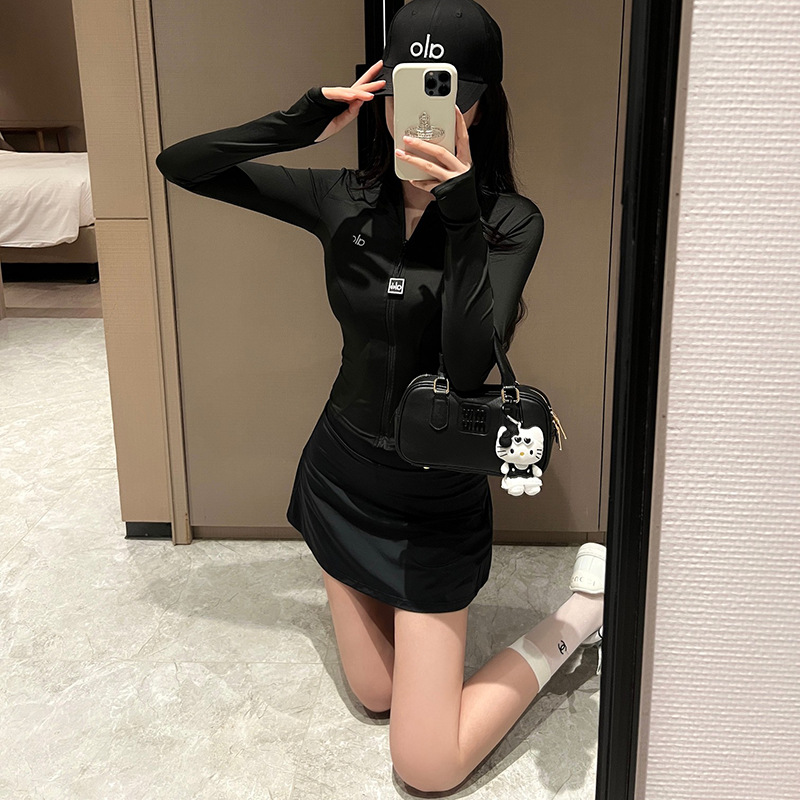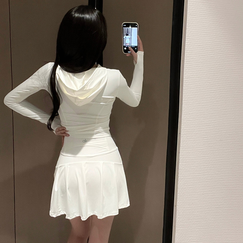 ALOMTLS 여성용 고품질 요가복 세트, 슬림핏 자외선 차단 스포츠 후드 재킷, 노출 방지 테니스 스커트 팬츠스토어 가기