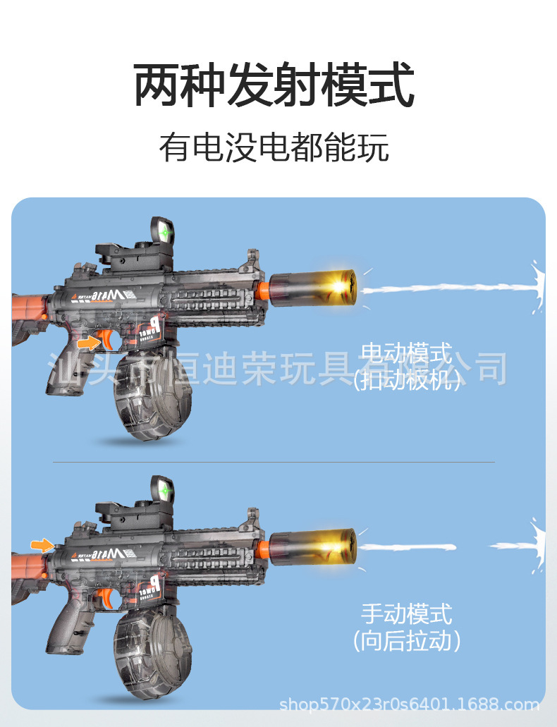새로운 불꽃 얼음 폭발 수동 M416 어린이 물총 대용량 장거리 전기 물총 61 선물스토어 가기