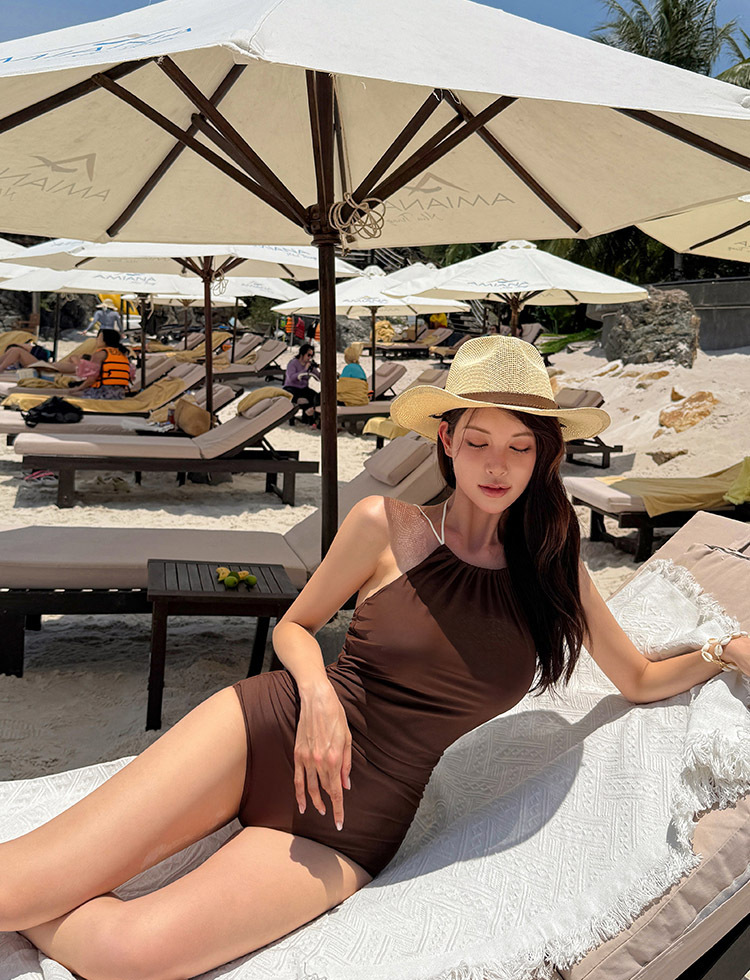 여성을 위한 고급 원피스 섹시 순수한 욕망 스타일 해변 수영복 2025 새로운 핫 스타일 배를 덮고 슬리밍 온천 수영복