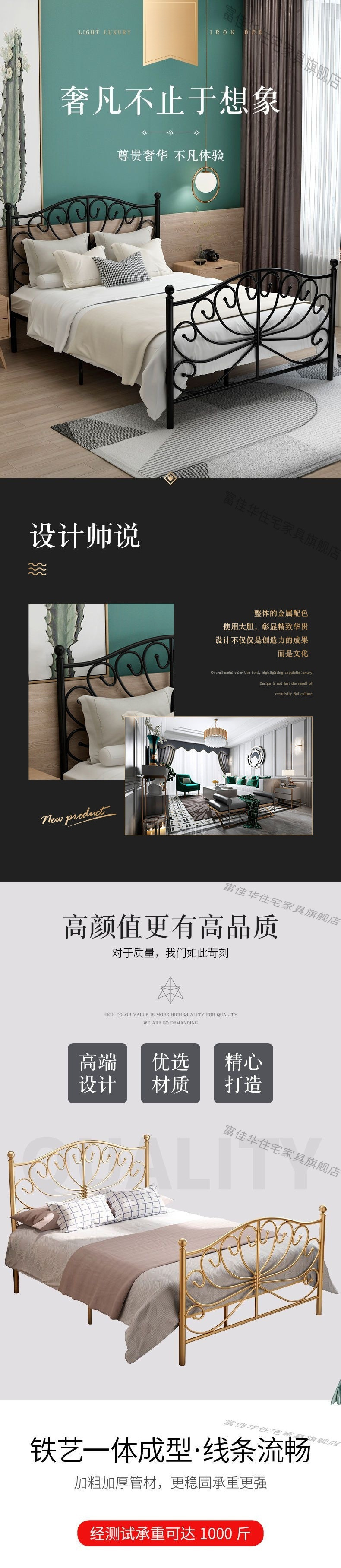 유럽 스타일의 공주 2층 더블 철제 침대 스타일 골드 철제 프레임 침대 1.35m 싱글 침대 1.8m 침대스토어 가기