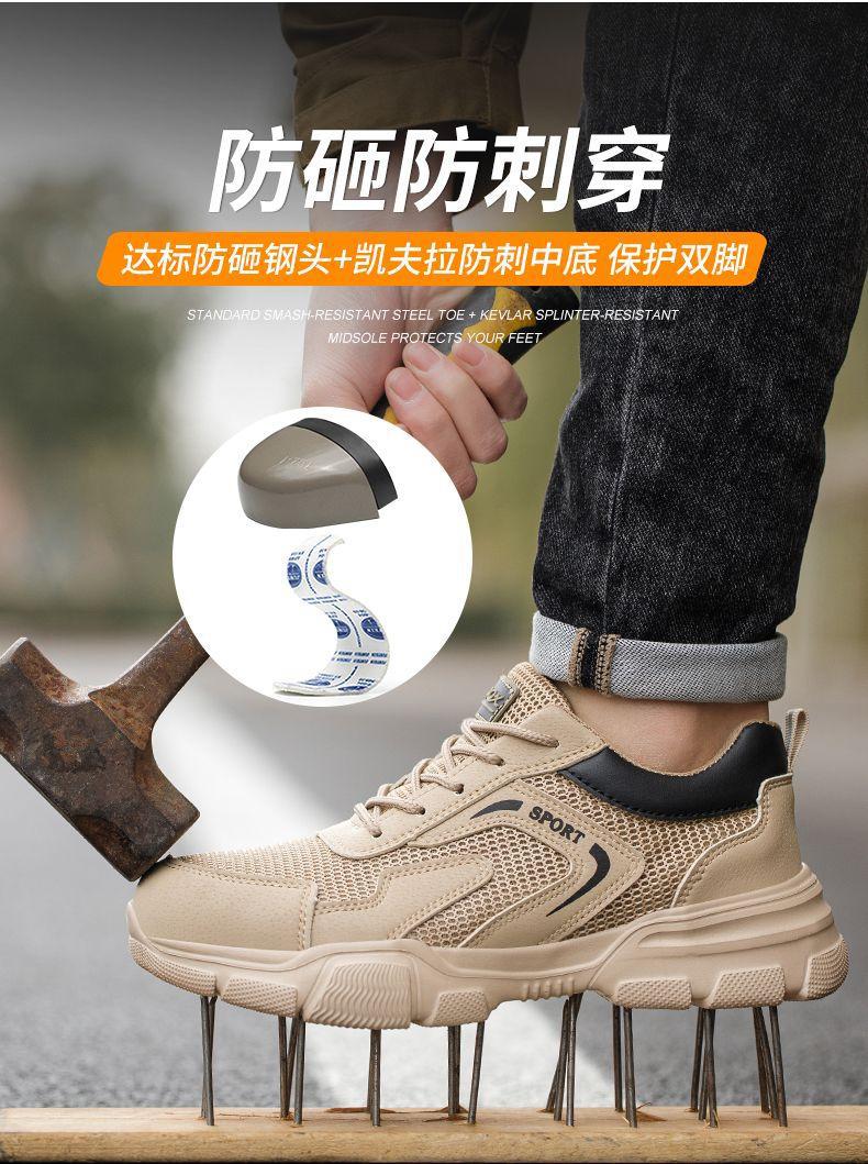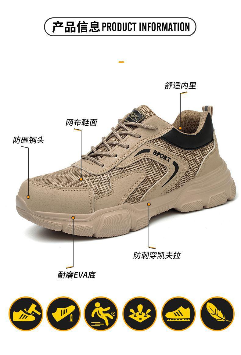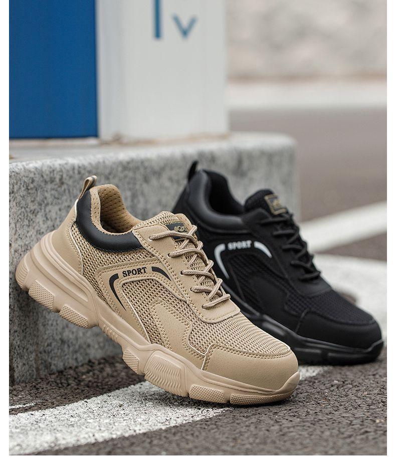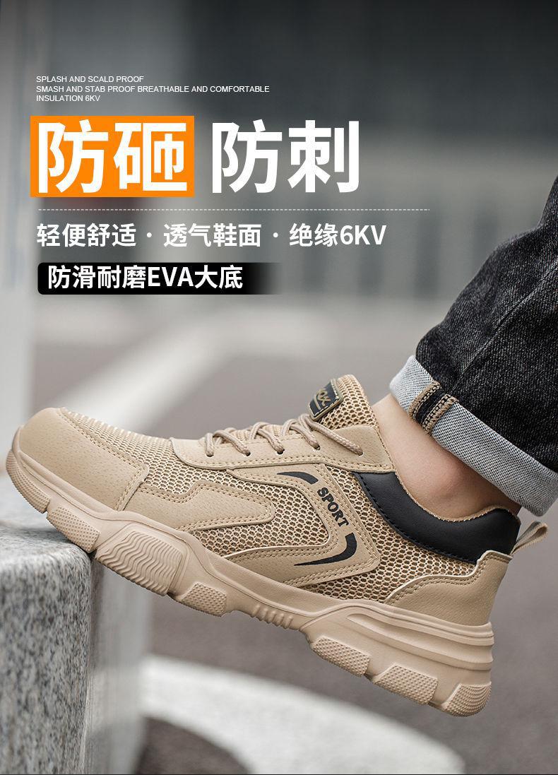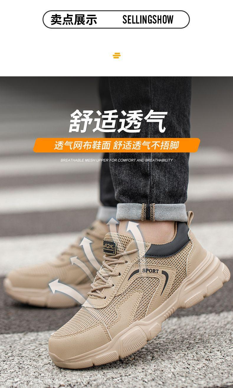 남성용 경량 통기성 부드러운 밑창 안전화, 발이 피곤하지 않은 건설 현장 작업화, 충격 방지 및 관통 방지, 여름 보호 안전화스토어 가기
