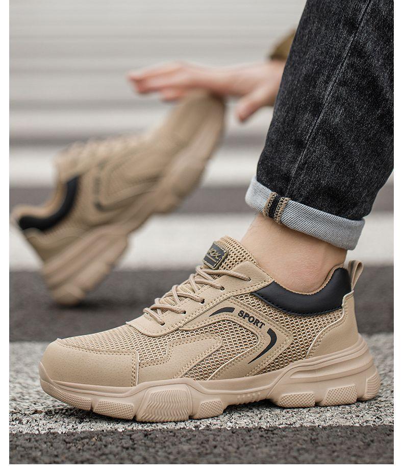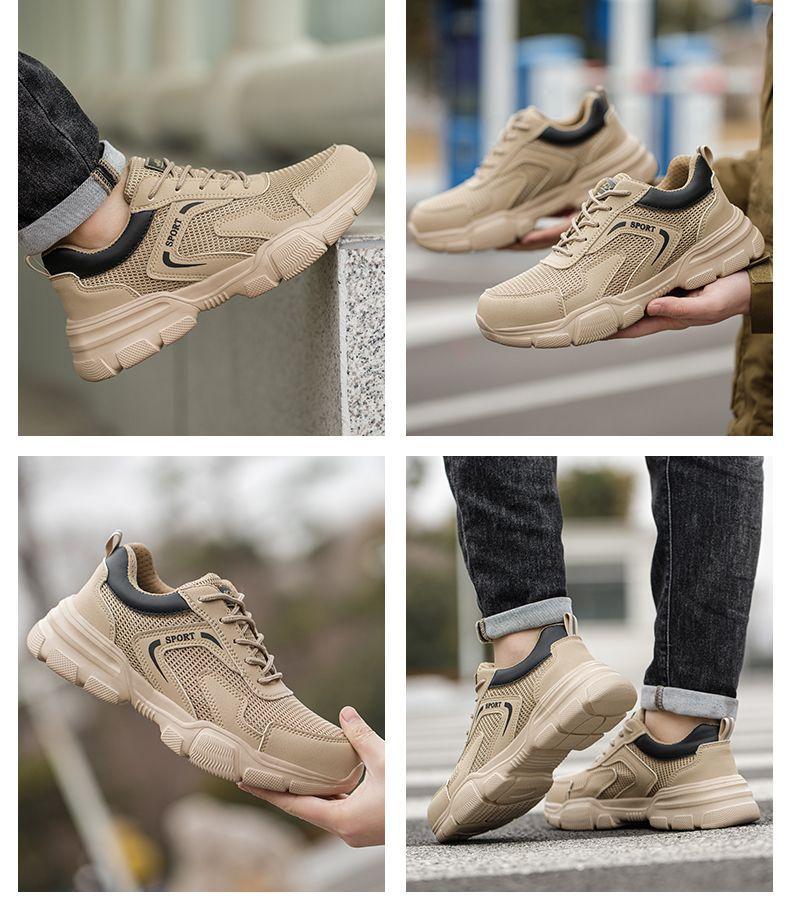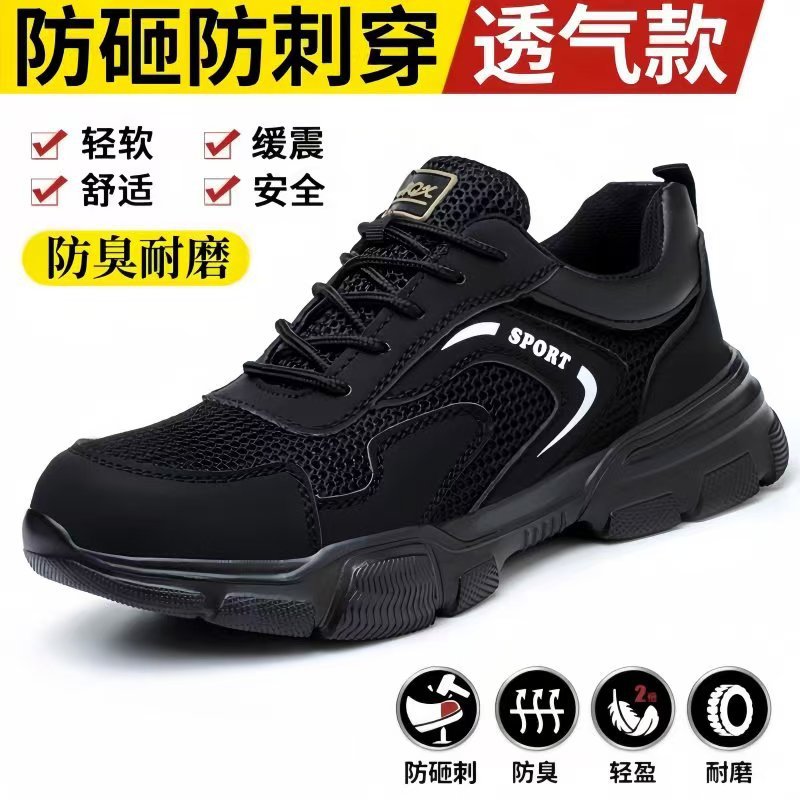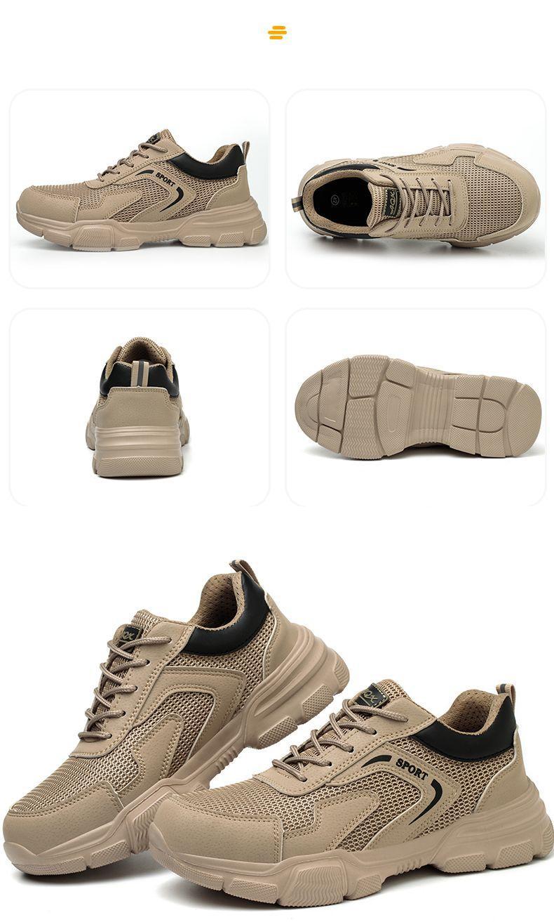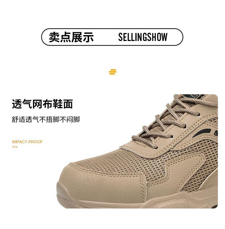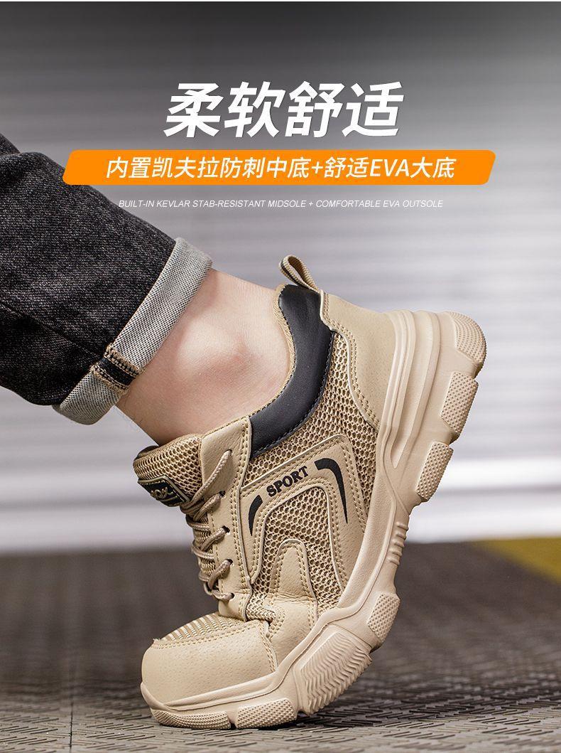 남성용 경량 통기성 부드러운 밑창 안전화, 발이 피곤하지 않은 건설 현장 작업화, 충격 방지 및 관통 방지, 여름 보호 안전화스토어 가기