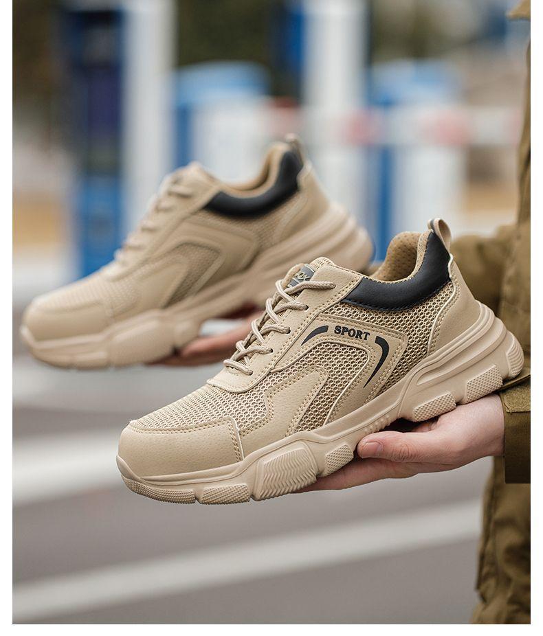남성용 경량 통기성 부드러운 밑창 안전화, 발이 피곤하지 않은 건설 현장 작업화, 충격 방지 및 관통 방지, 여름 보호 안전화