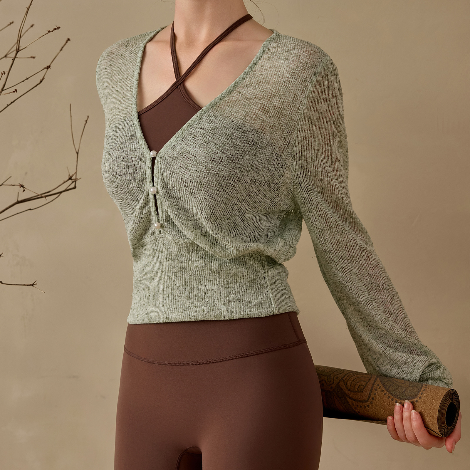 빈티지 긴팔 요가 옷 드로우 스트링 스포츠 조끼 여성 얇은 느슨한 블라우스 전문 러닝 피트니스 탑 여름