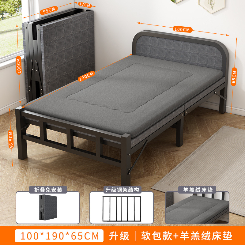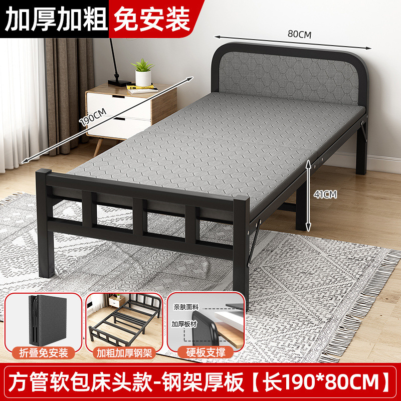 접이식 침대 싱글 침대 가정용 휴대용 임대 집 철제 침대 사무실 간단한 낮잠 침대 성인 낮잠 하드 침대