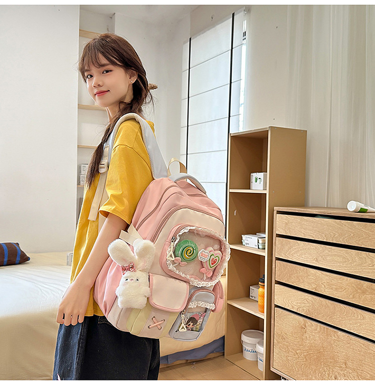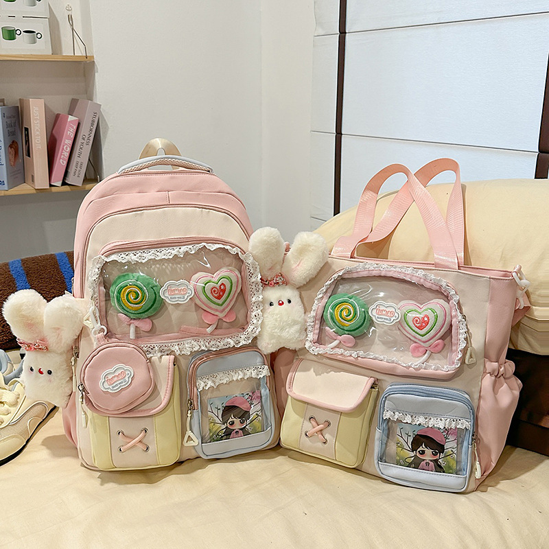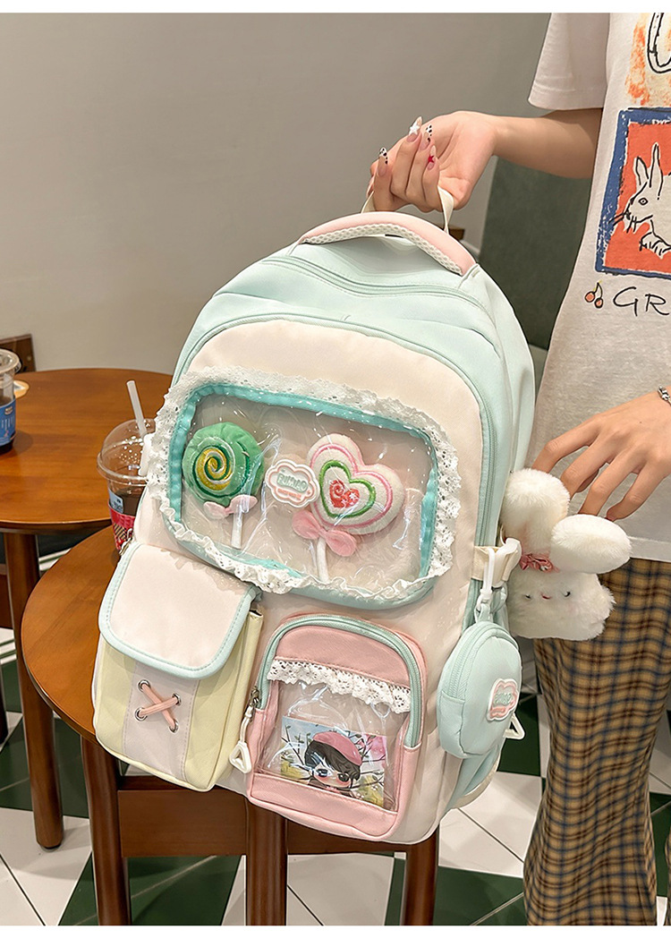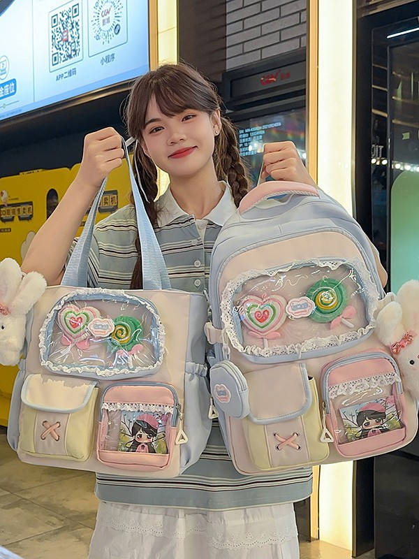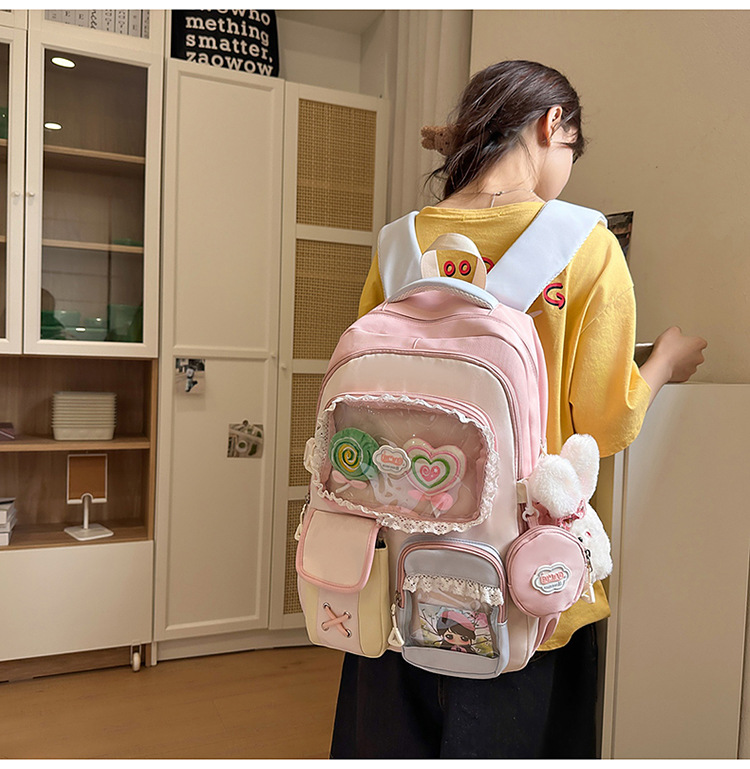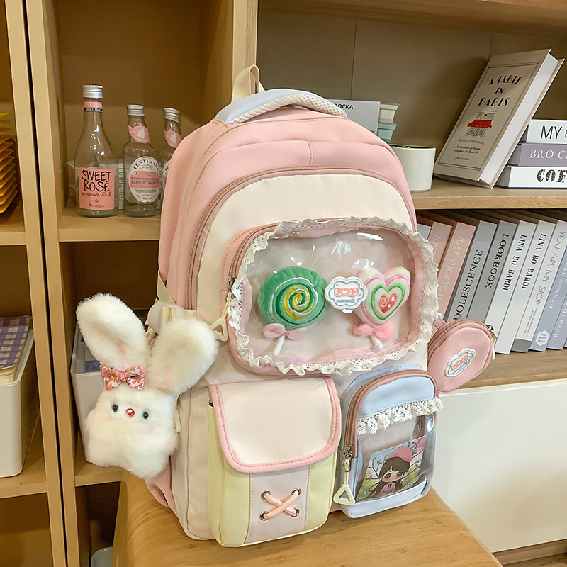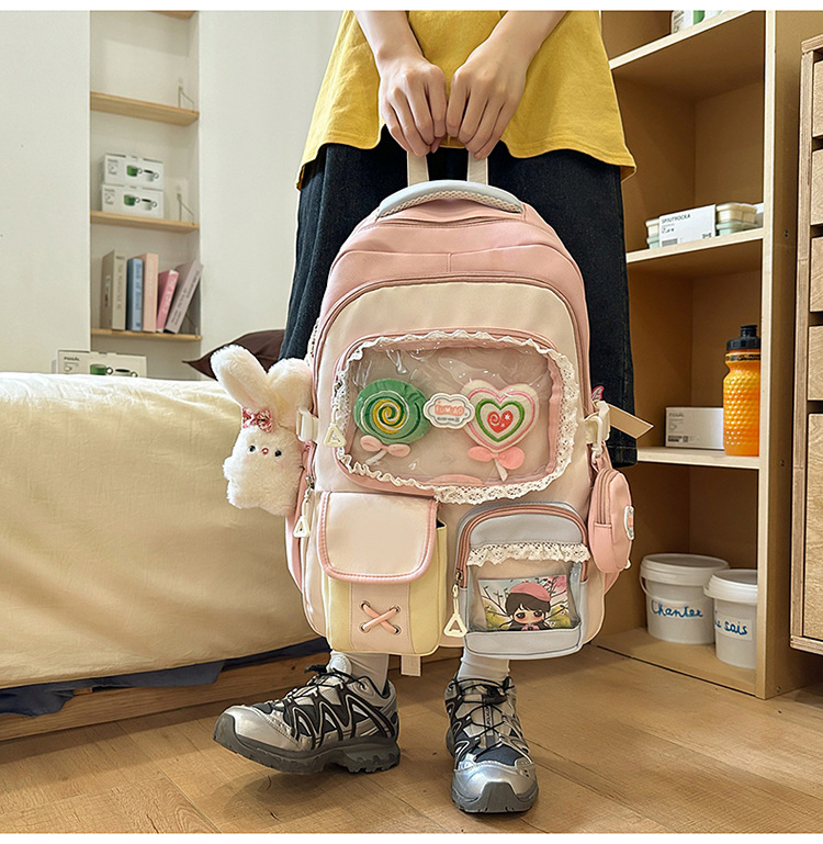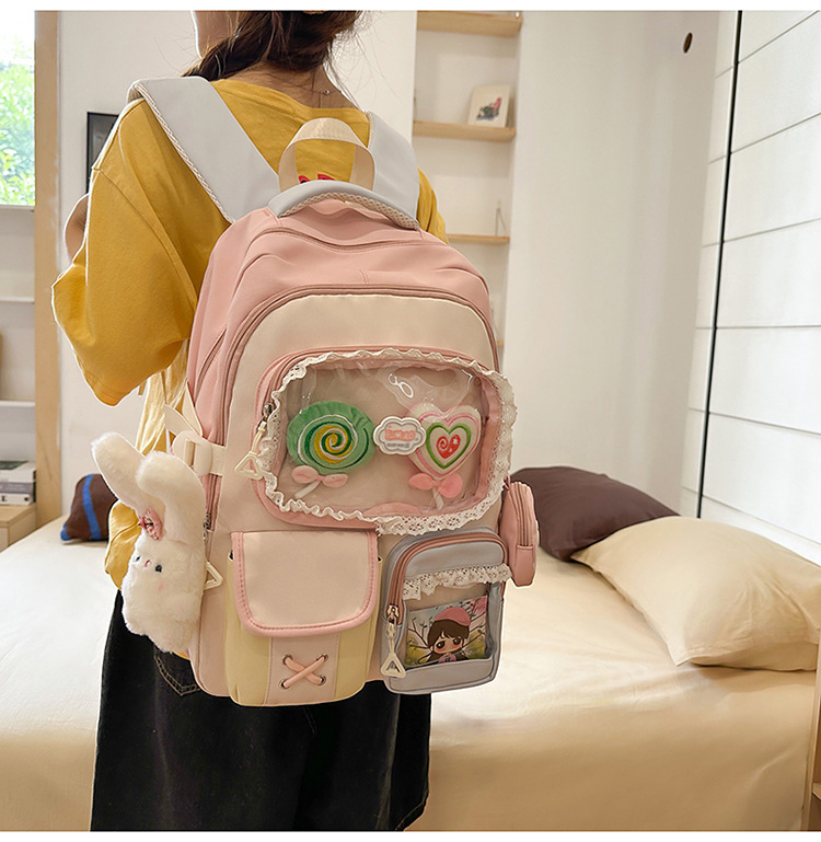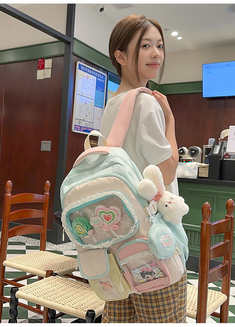 높은 가치의 도파민 달콤한 대조 소녀의 심장 배낭 대학 스타일 중학교 학생 멀티 구획 배낭스토어 가기