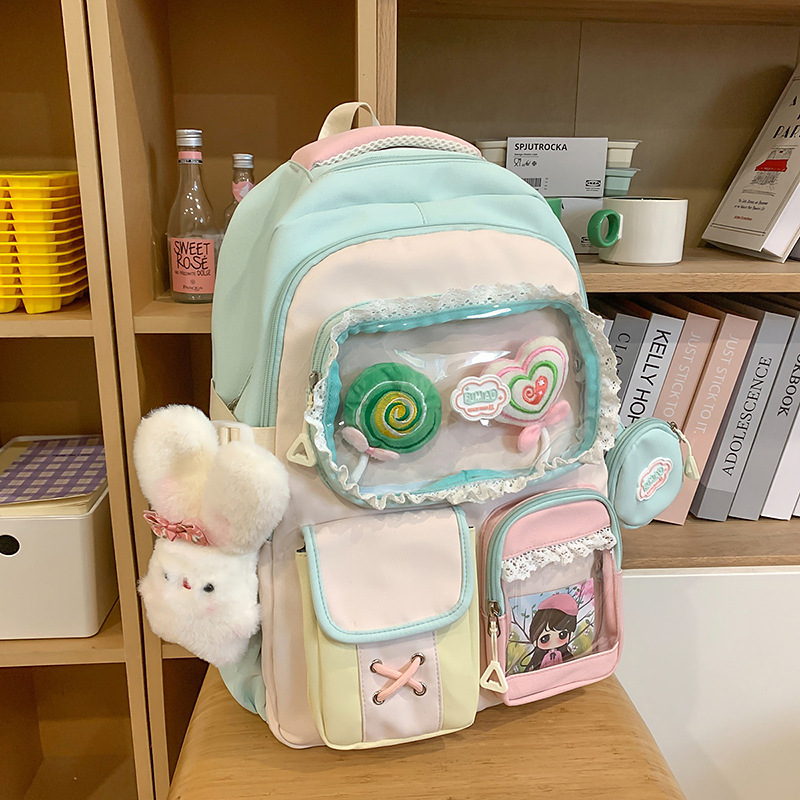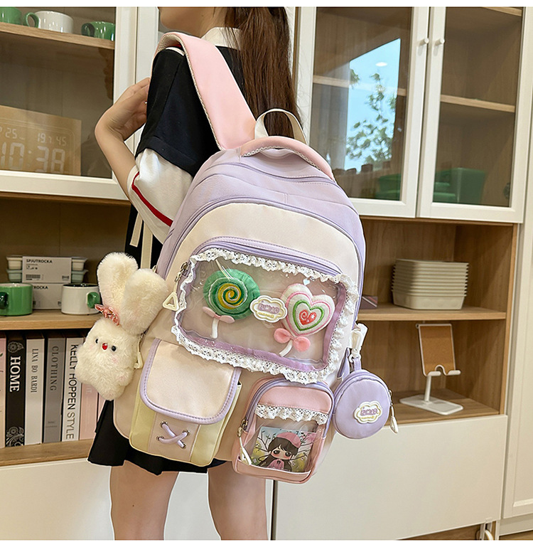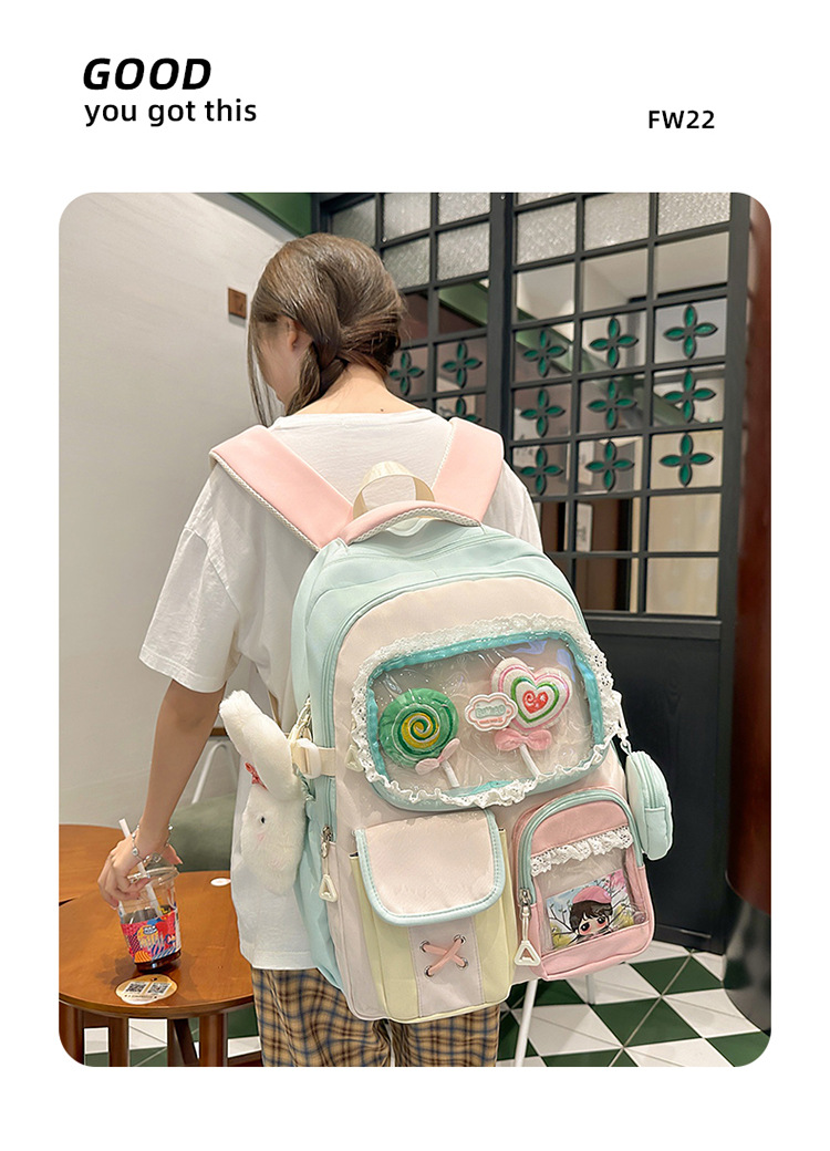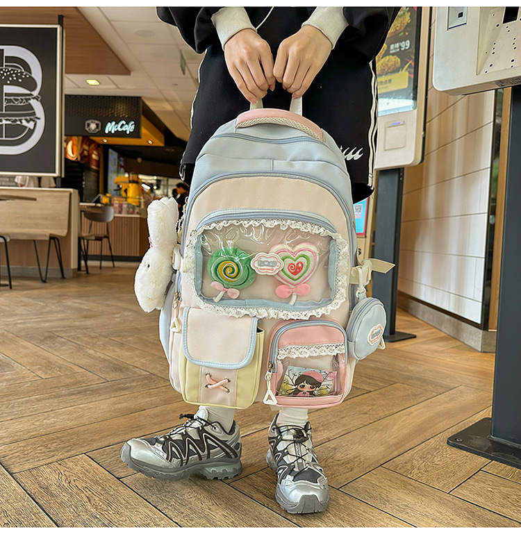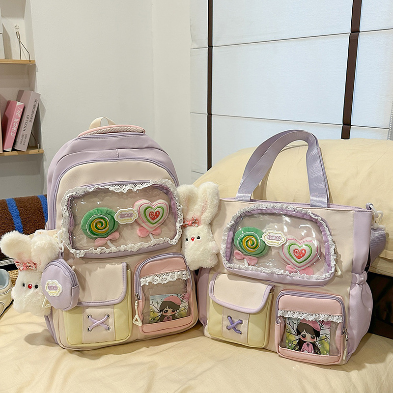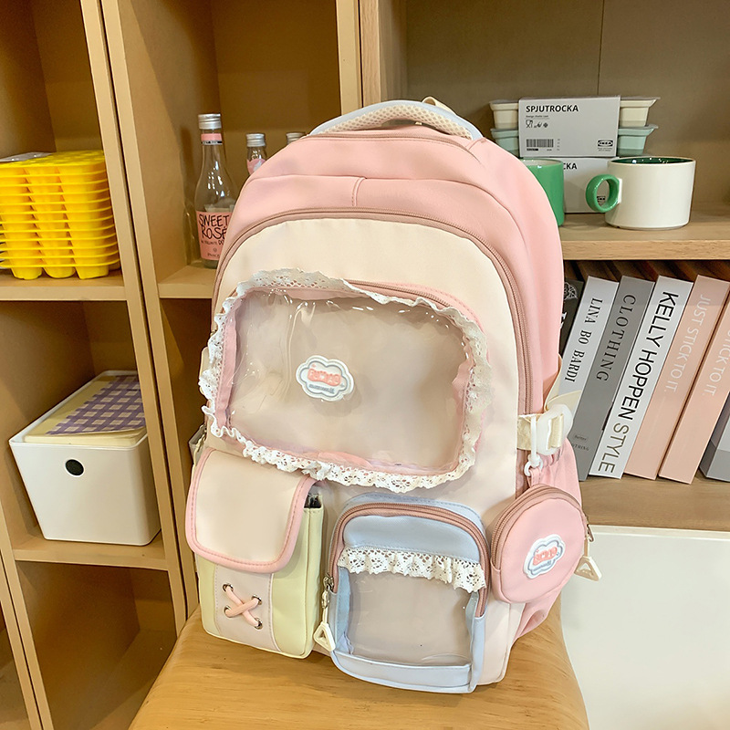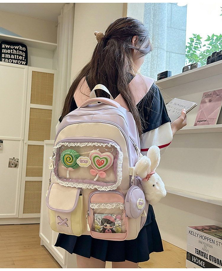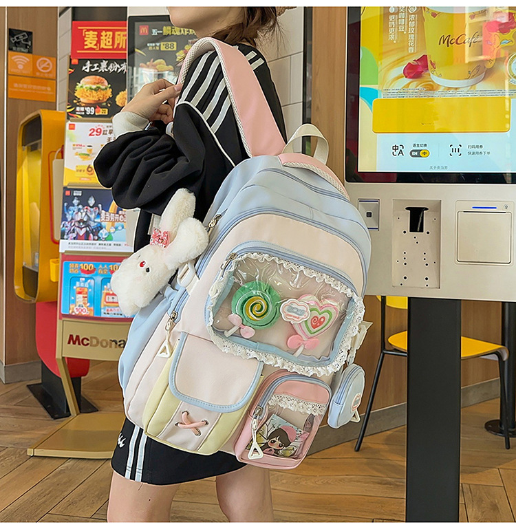 높은 가치의 도파민 달콤한 대조 소녀의 심장 배낭 대학 스타일 중학교 학생 멀티 구획 배낭스토어 가기
