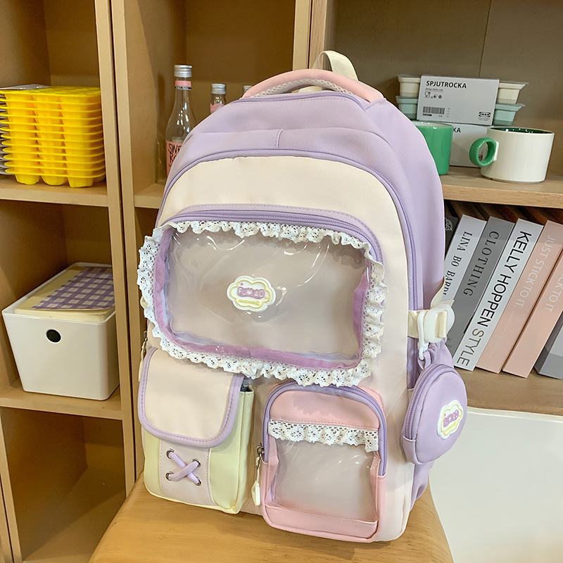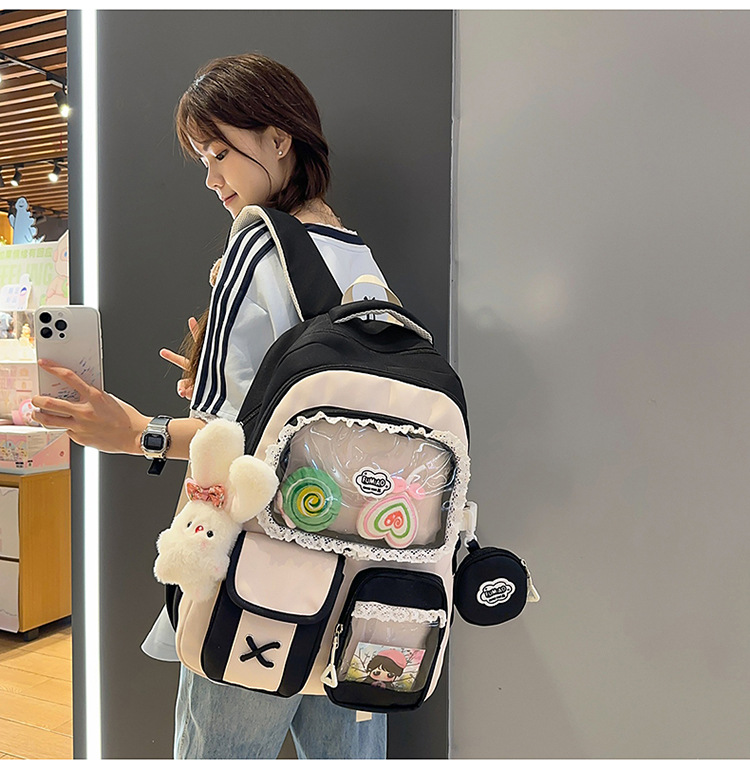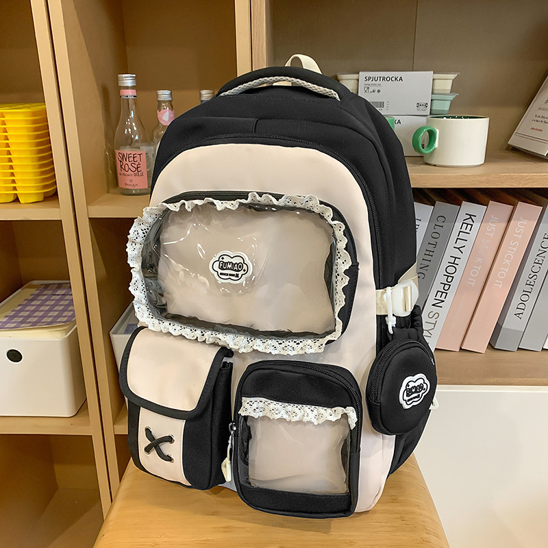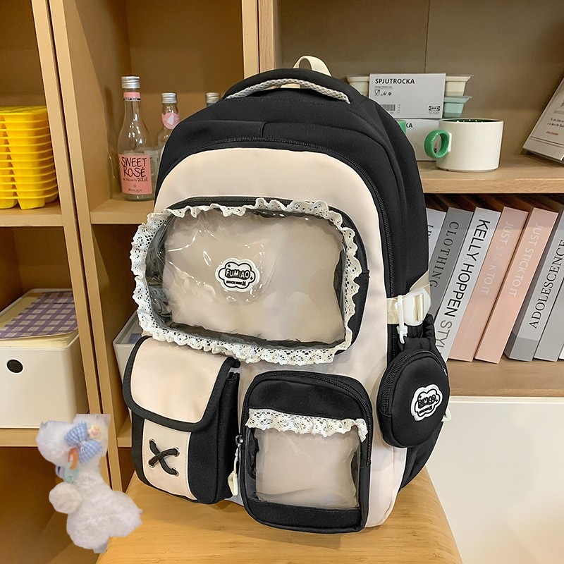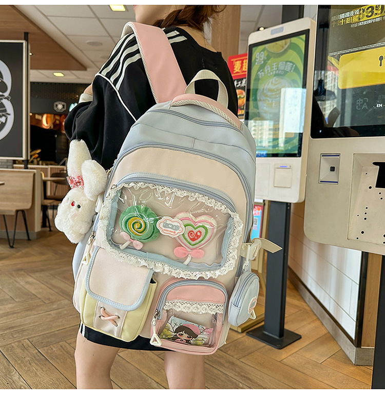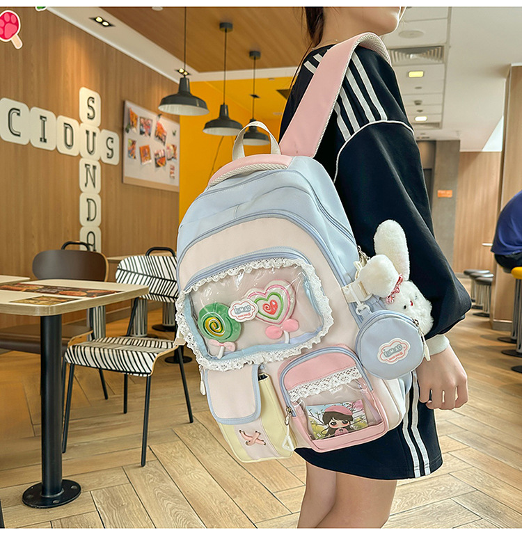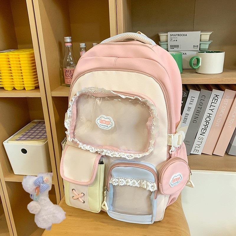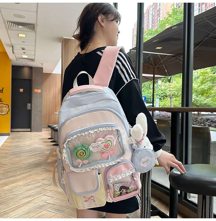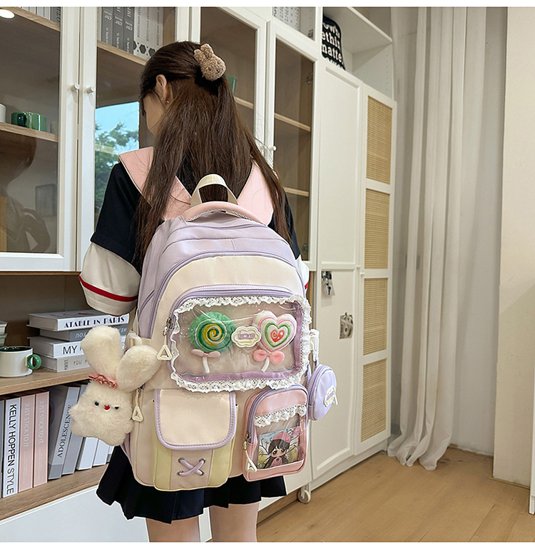 높은 가치의 도파민 달콤한 대조 소녀의 심장 배낭 대학 스타일 중학교 학생 멀티 구획 배낭스토어 가기