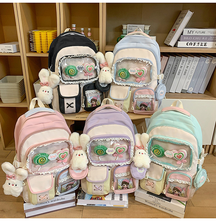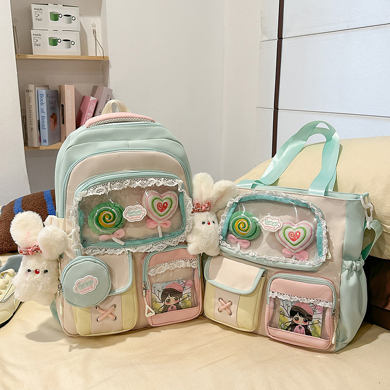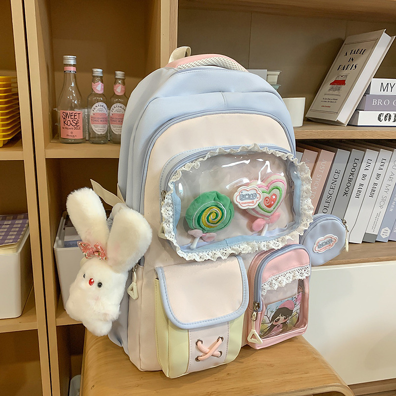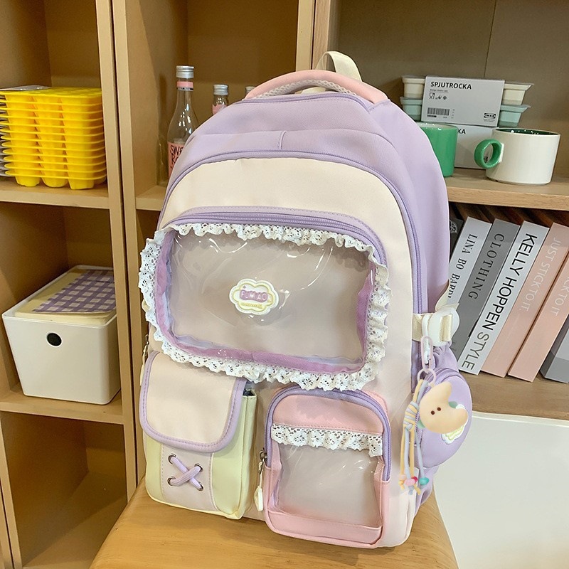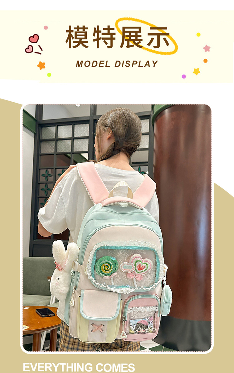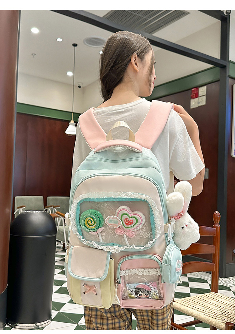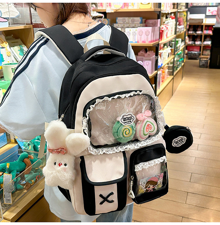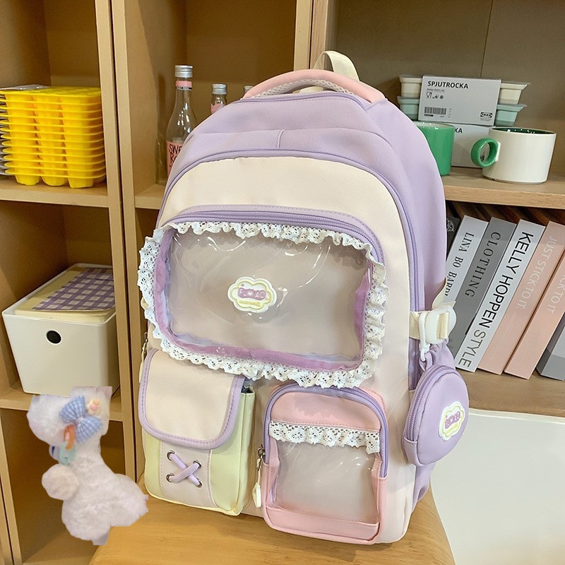 높은 가치의 도파민 달콤한 대조 소녀의 심장 배낭 대학 스타일 중학교 학생 멀티 구획 배낭스토어 가기