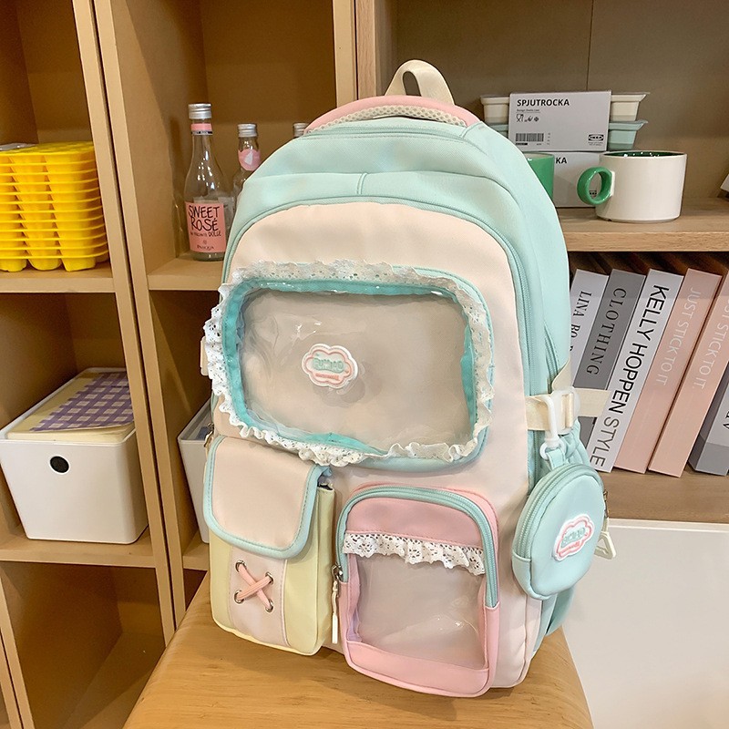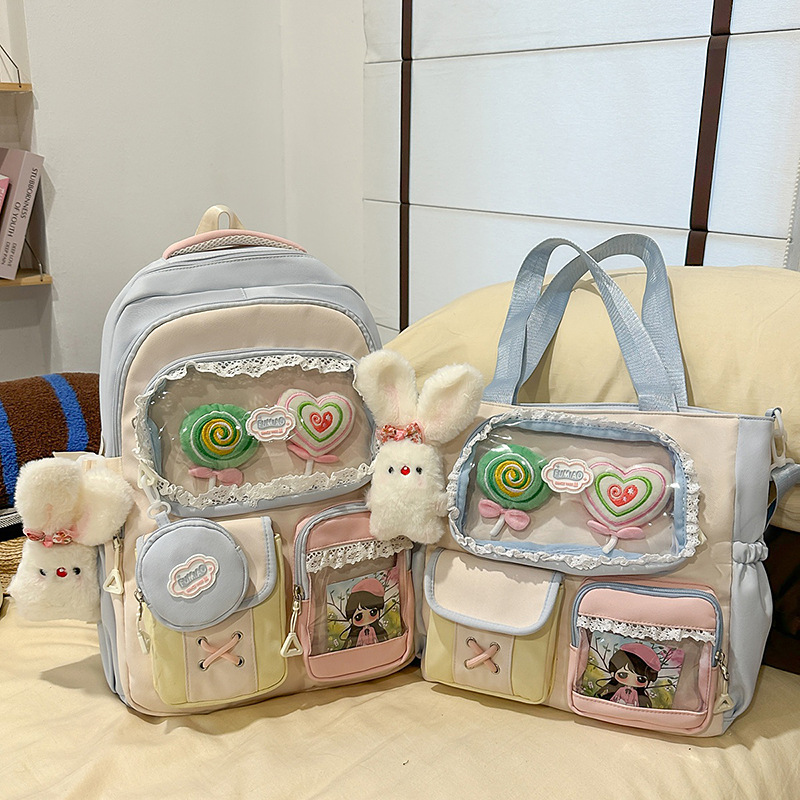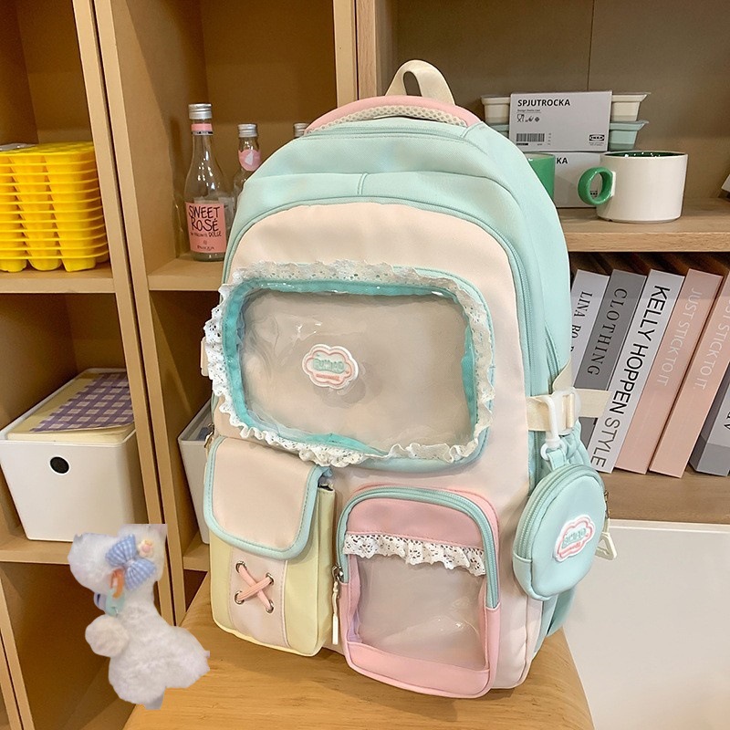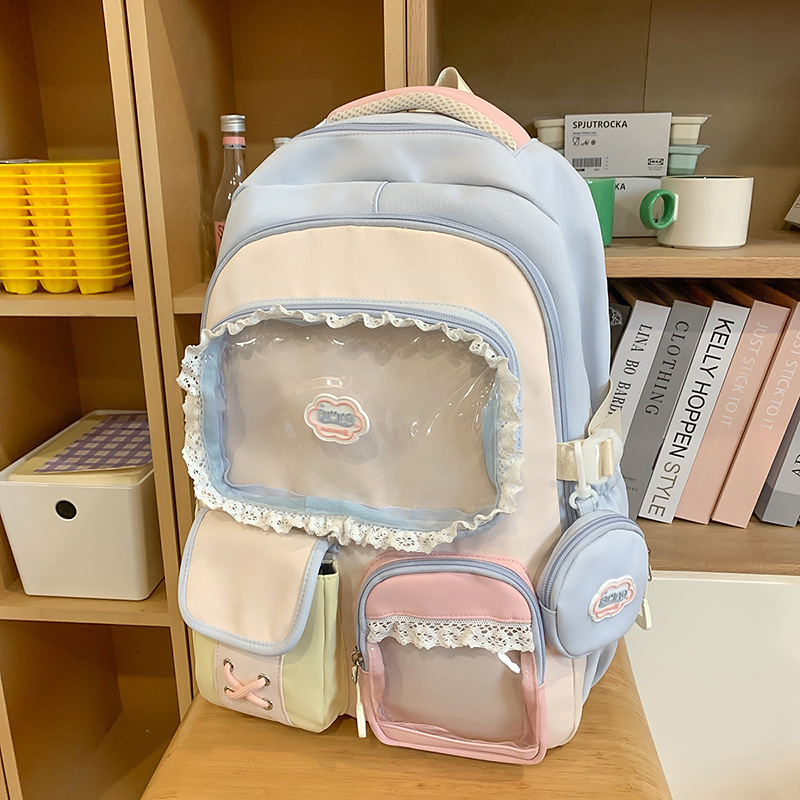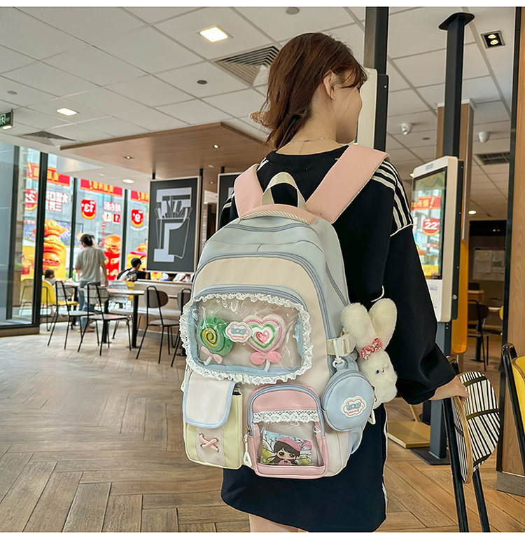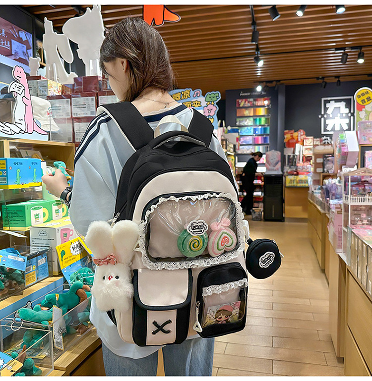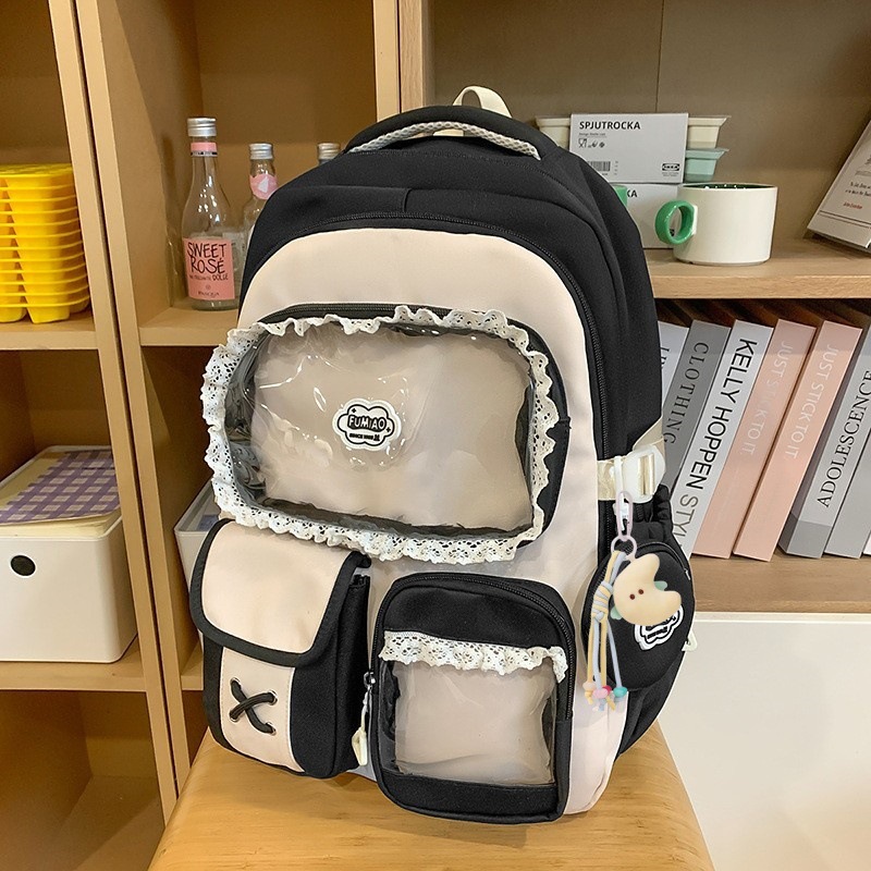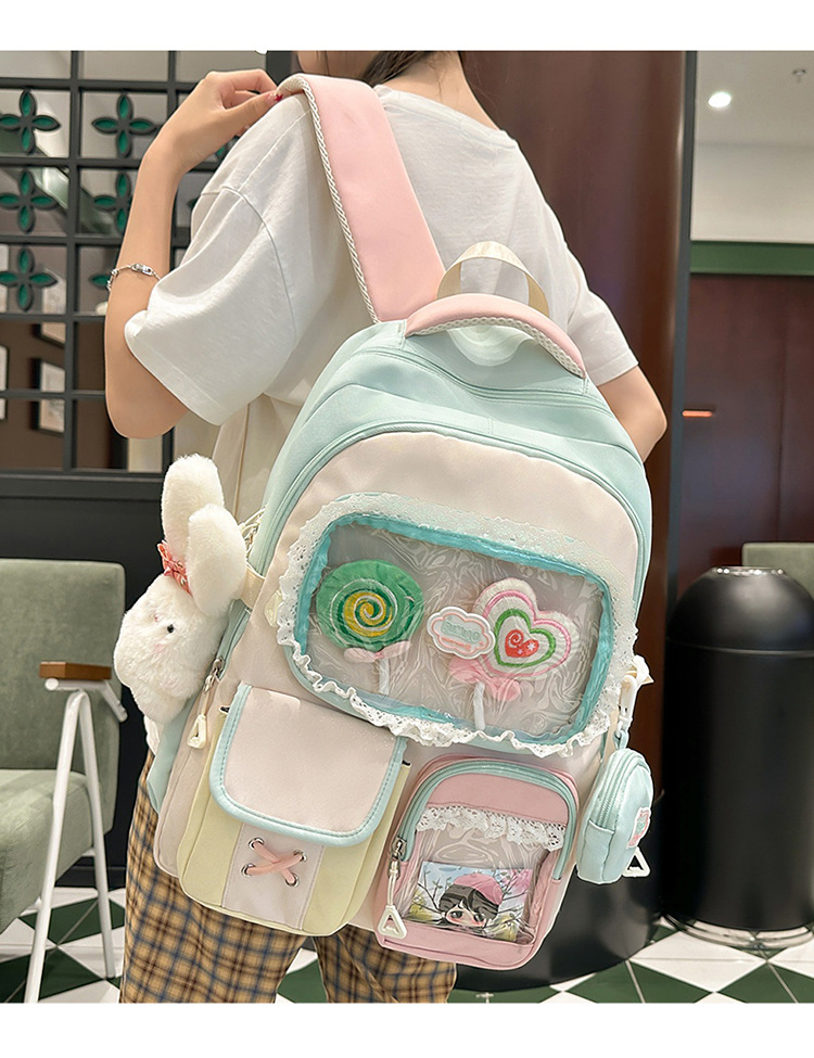 높은 가치의 도파민 달콤한 대조 소녀의 심장 배낭 대학 스타일 중학교 학생 멀티 구획 배낭스토어 가기