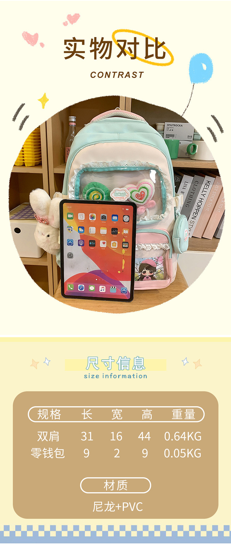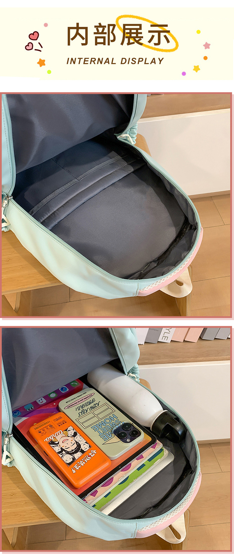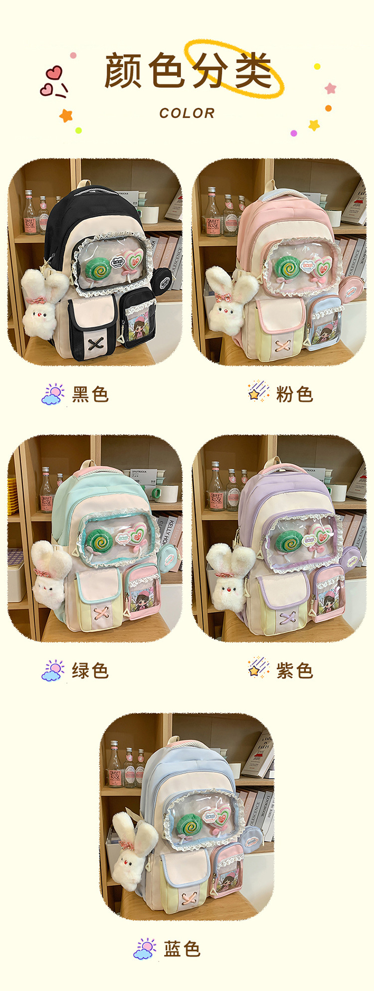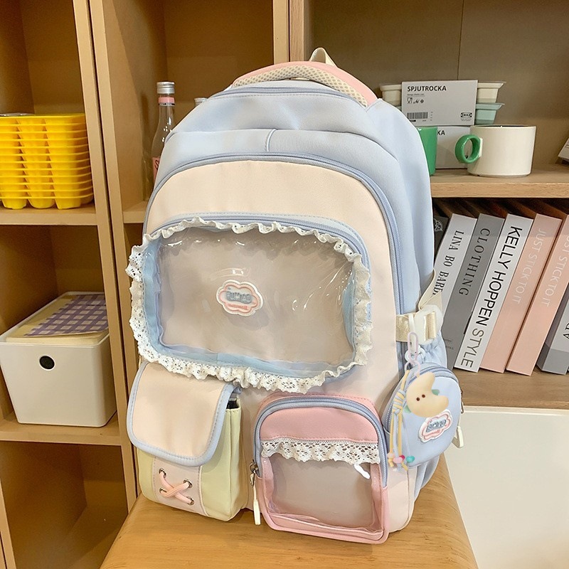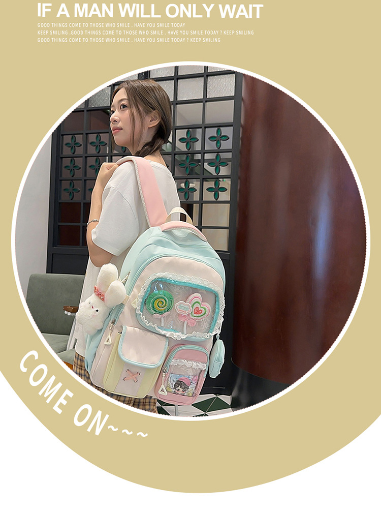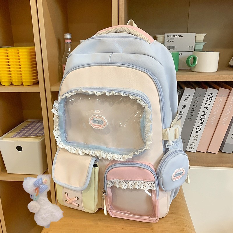 높은 가치의 도파민 달콤한 대조 소녀의 심장 배낭 대학 스타일 중학교 학생 멀티 구획 배낭스토어 가기