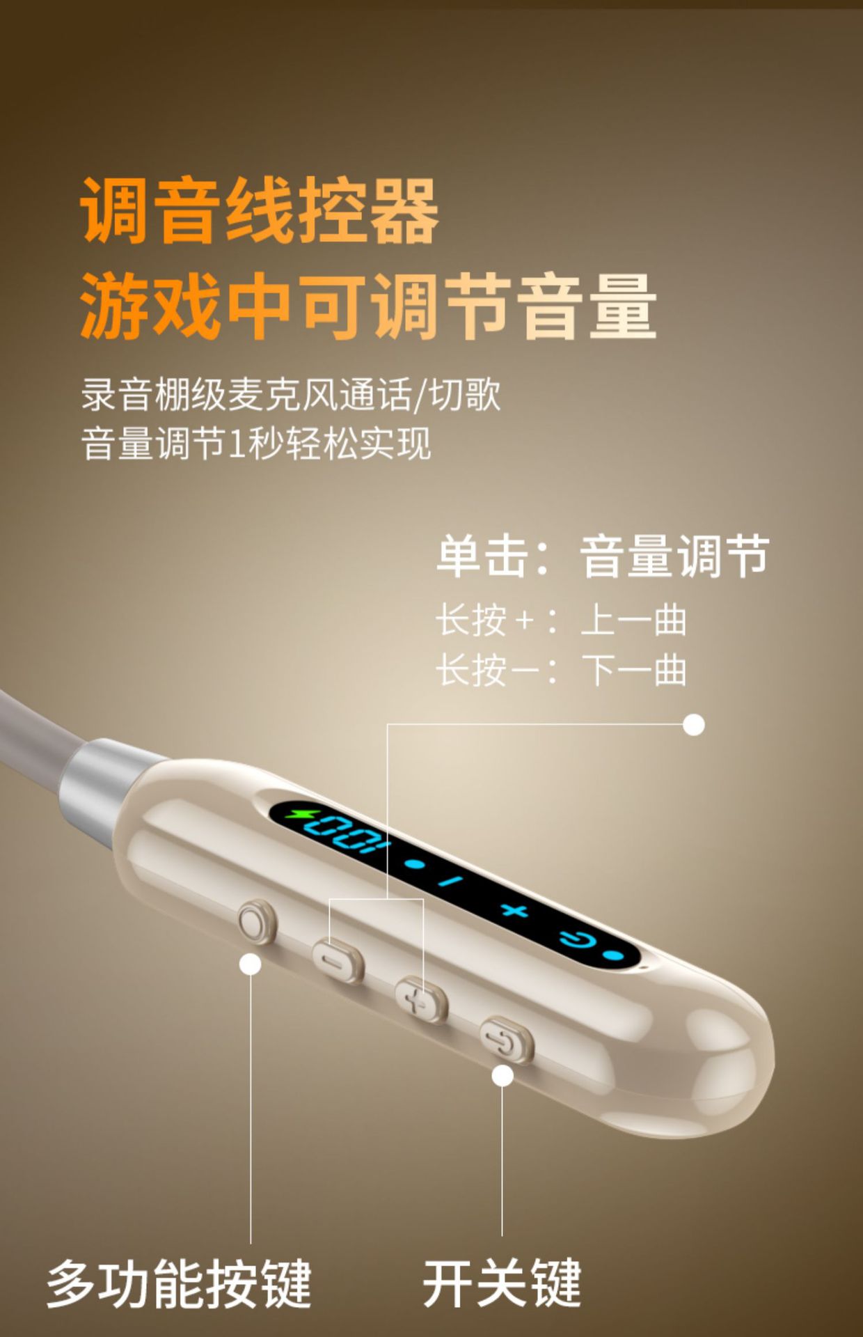오리지널 정통 블루투스 헤드셋 무선 목걸이 형 고품질 소음 감소 초장기 배터리 수명 디지털 디스플레이 2025 새로운 스타일스토어 가기