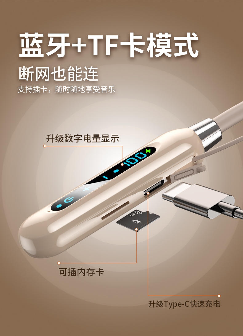 오리지널 정통 블루투스 헤드셋 무선 목걸이 형 고품질 소음 감소 초장기 배터리 수명 디지털 디스플레이 2025 새로운 스타일