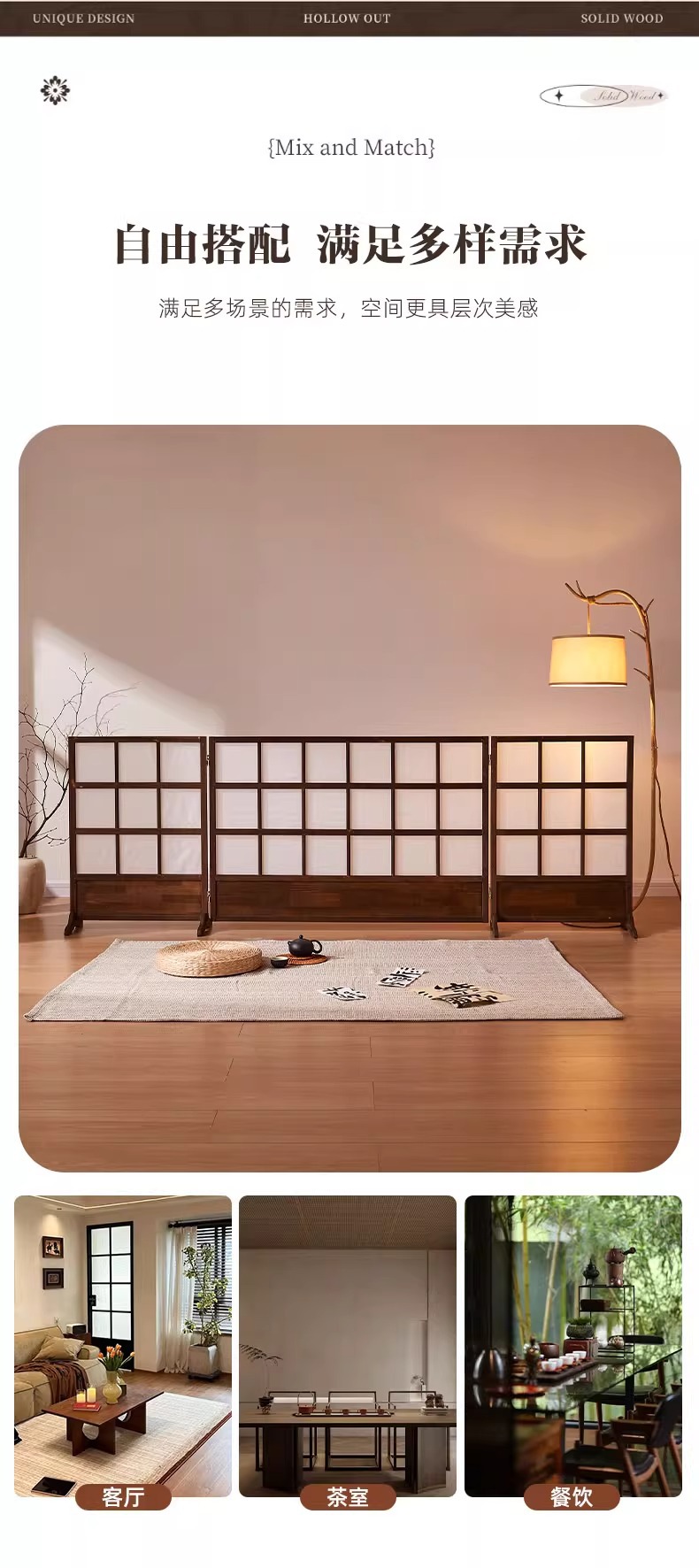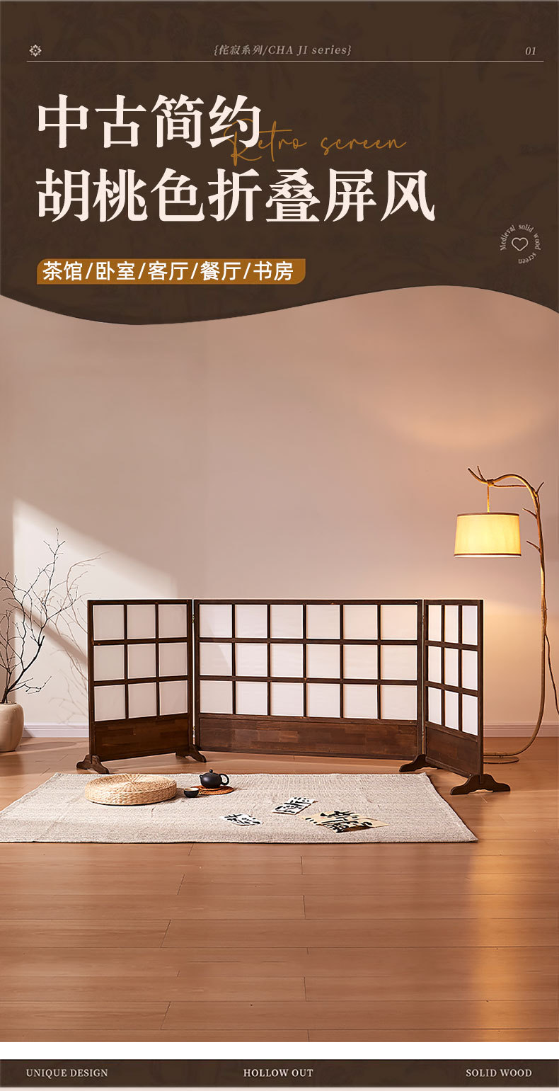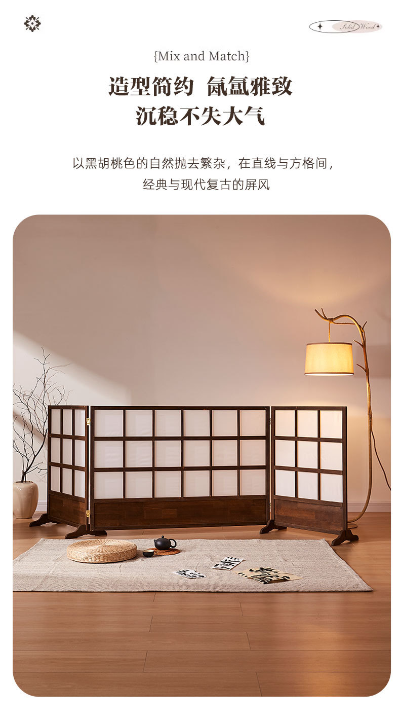 새로운 중국 스타일 스크린 복고풍 파티션 거실 단단한 나무 접이식 간단한 B&B 침실 차단 두꺼운 테두리 접이식 스크린