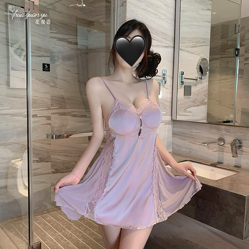 여성을위한 얼음 실크 프랑스 잠옷 여름 새로운 섹시한 레이스 반팔 롱 스커트 가슴 패드가있는 요정 스타일 잠옷 홈웨어스토어 가기
