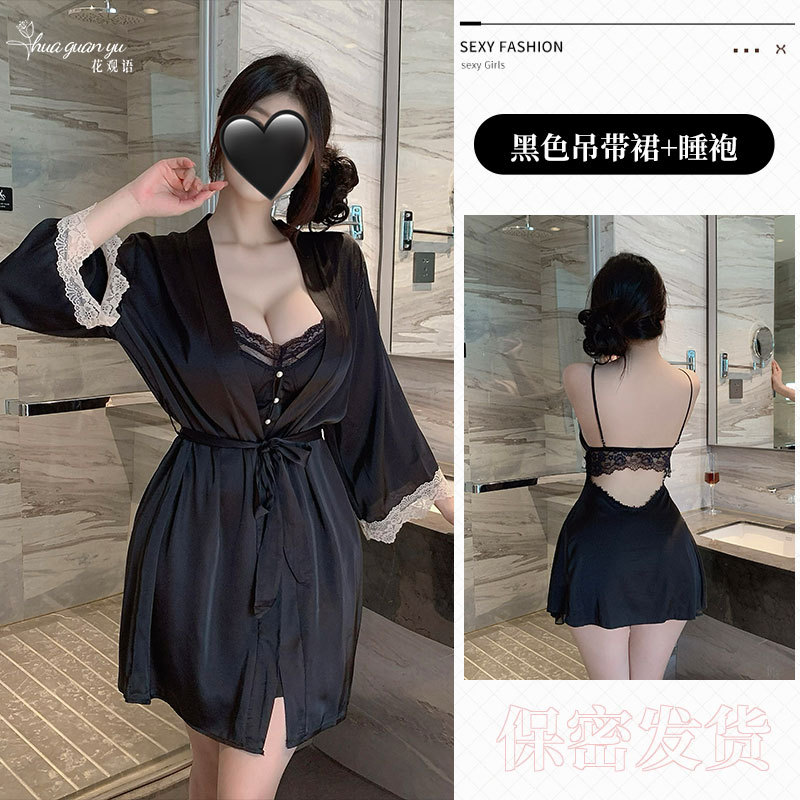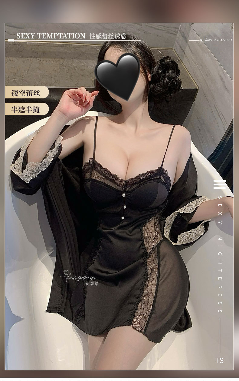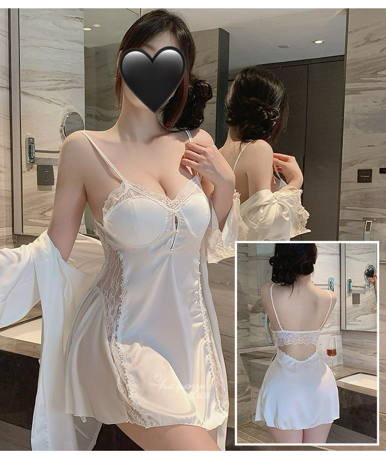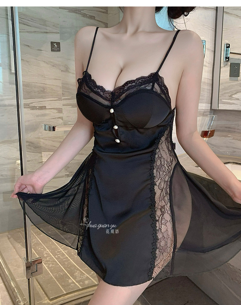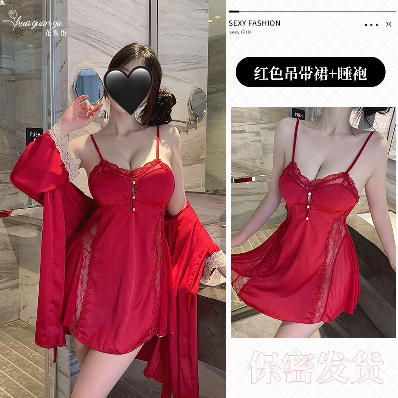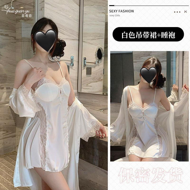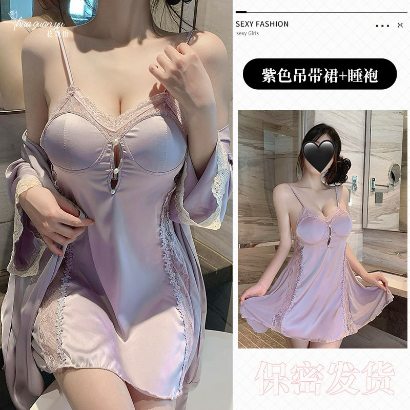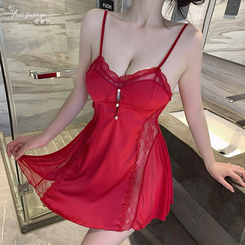 여성을위한 얼음 실크 프랑스 잠옷 여름 새로운 섹시한 레이스 반팔 롱 스커트 가슴 패드가있는 요정 스타일 잠옷 홈웨어