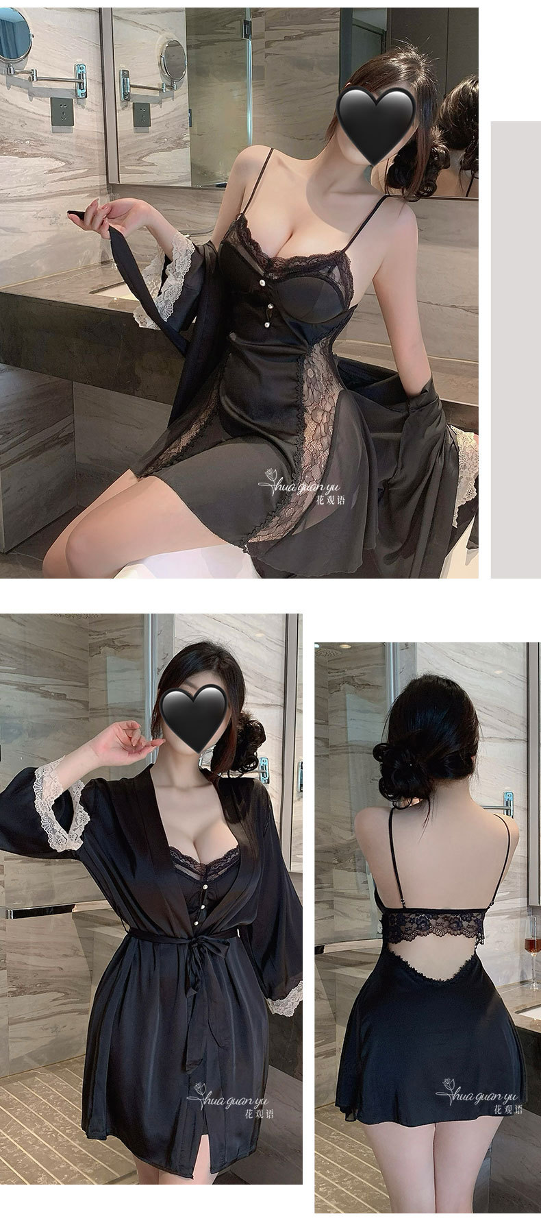 • 블랙 [슬립스커트+코트+벨트]