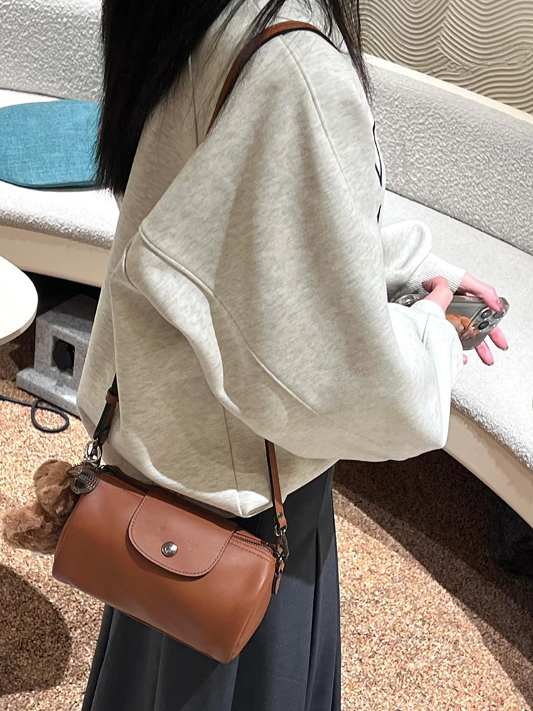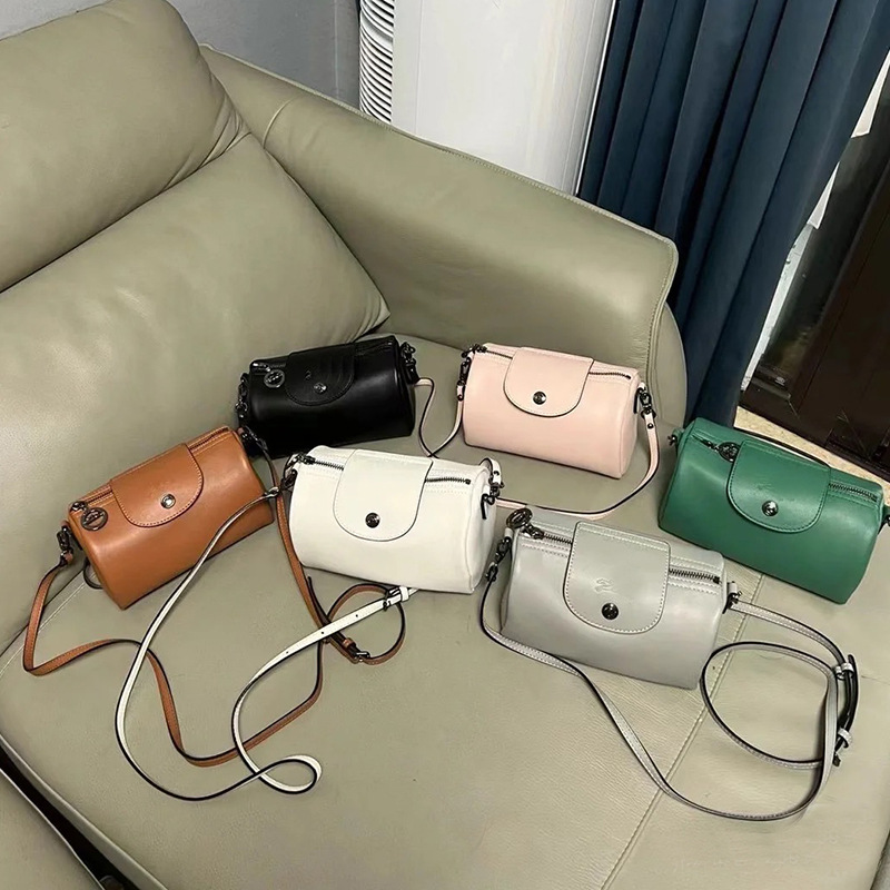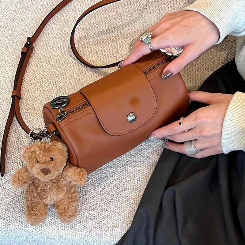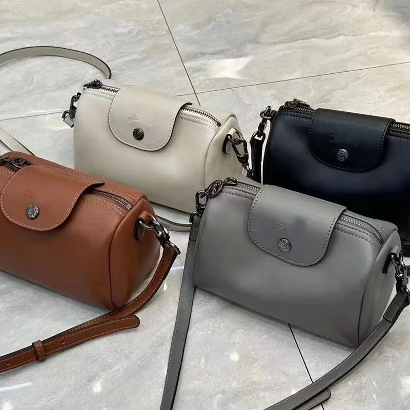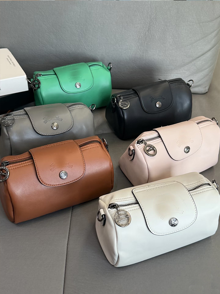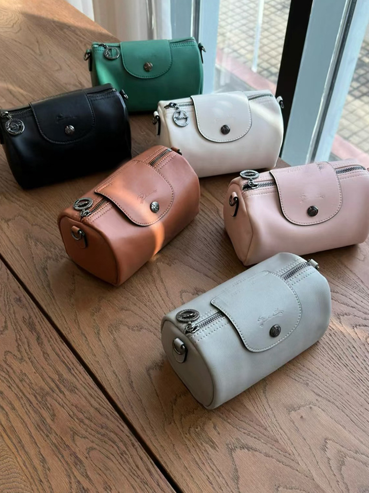 2025년 신형 보스턴 원통형 가방 송아지 가죽 용자수 베개 가방 바게트 원통형 가방 숄더백 크로스백 배색스토어 가기