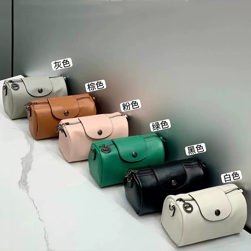 2025년 신형 보스턴 원통형 가방 송아지 가죽 용자수 베개 가방 바게트 원통형 가방 숄더백 크로스백 배색