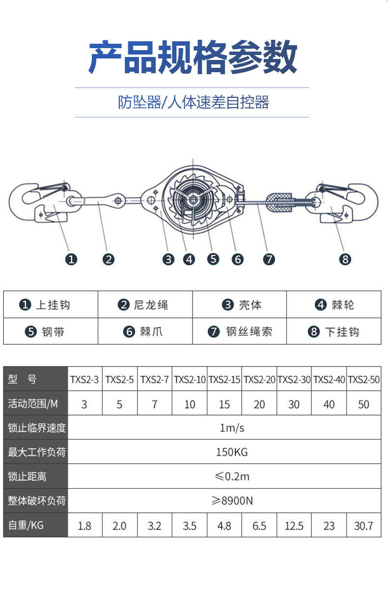 낙하 방지 장치 3/5/10/20/ 30m 타워 크레인 인체 하강/자동 제어/속도 차이 장치 고고도 낙하 방지 장치 자동 잠금 장치스토어 가기
