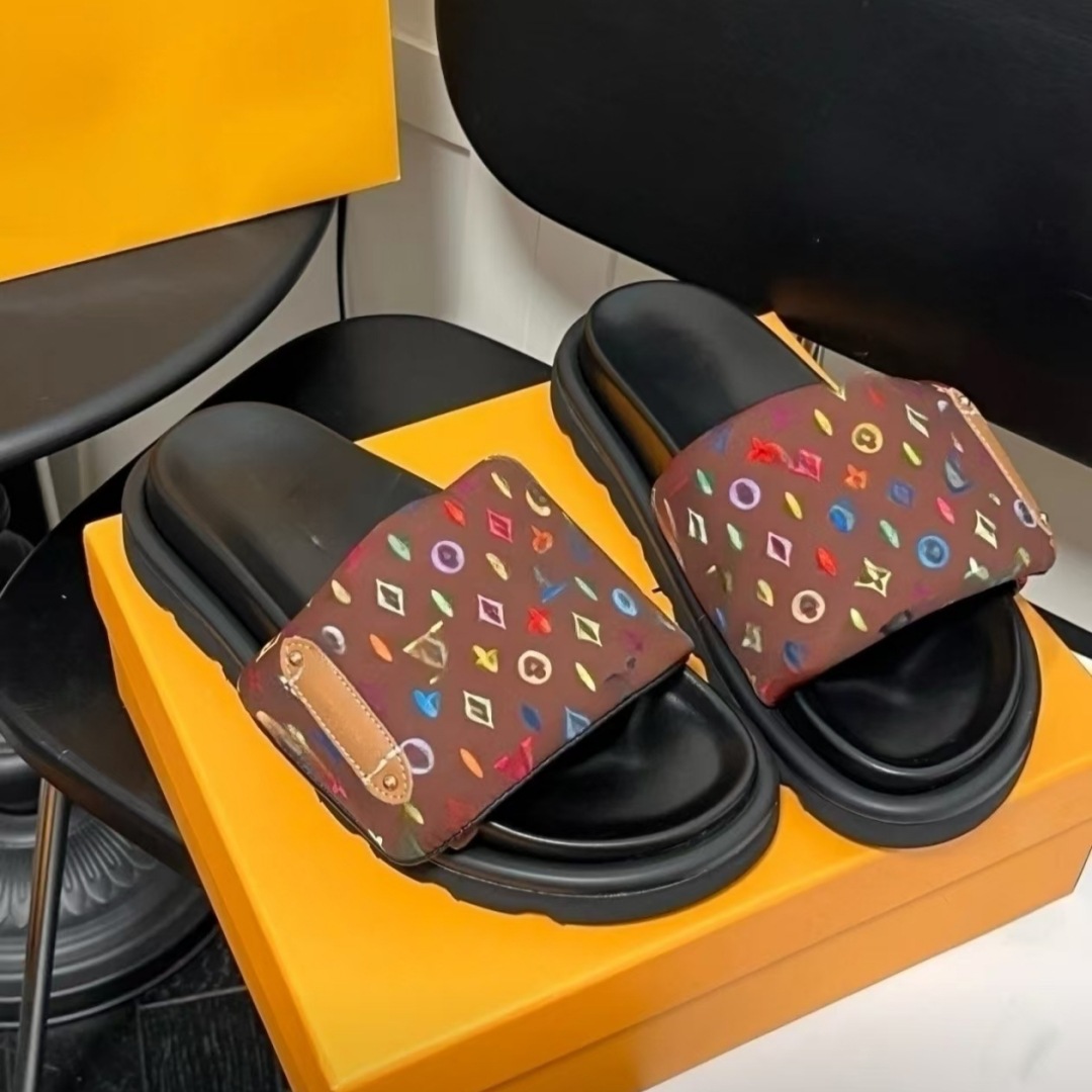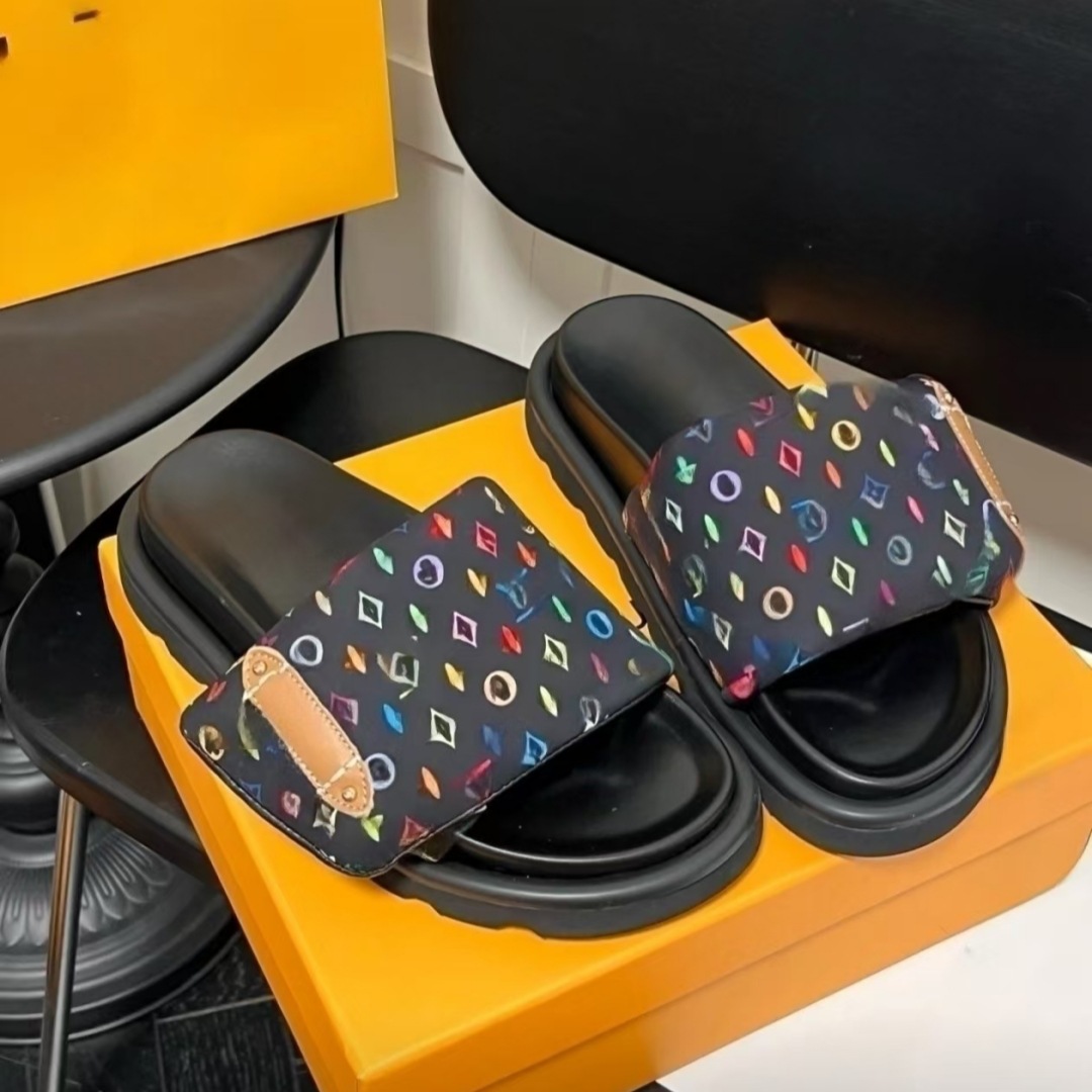 두꺼운 바닥 벨크로 슬리퍼 여성의 2025 새로운 스타일 당나귀 의상 유행 비 슬립 꽃 천 편지 한 단어 샌들스토어 가기