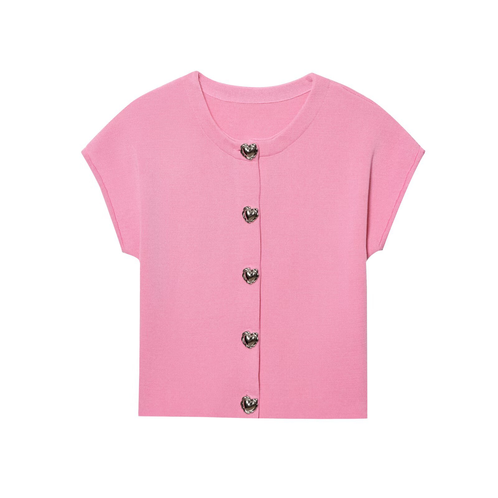 UC&ZA 크로스보더 유럽과 미국 스타일 여성 의류 202 여름 신작 하트 모양 버튼 라운드 넥 반팔 니트 탑 553607