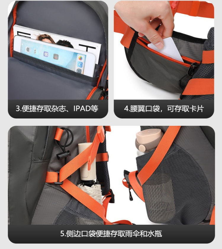 새로운 국경 간 야외 경량 대용량 방수 등산 가방 접이식 다기능 척추 보호 및 등 보호 피트니스 배낭