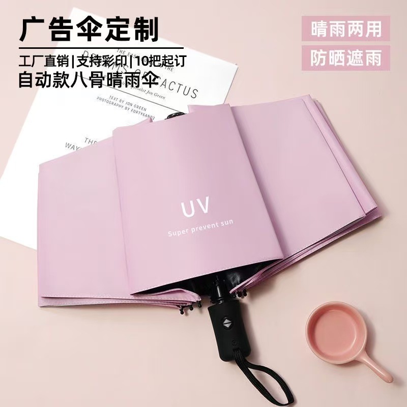 자동 UV 우산, 비 또는 빛 우산, 차양, 자외선 방지 접이식 우산, 비닐 광고 우산, 인쇄된 로고, 공장 직접 판매