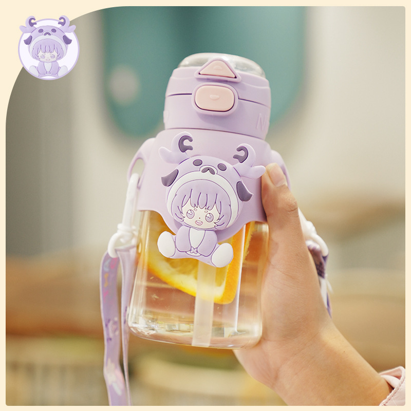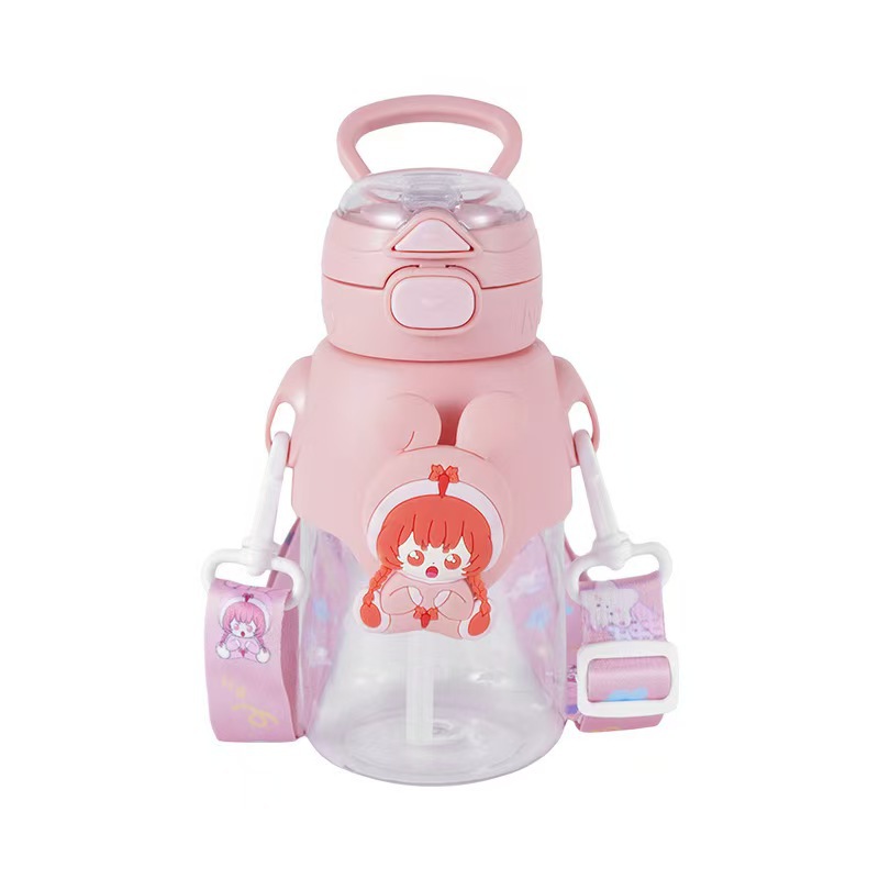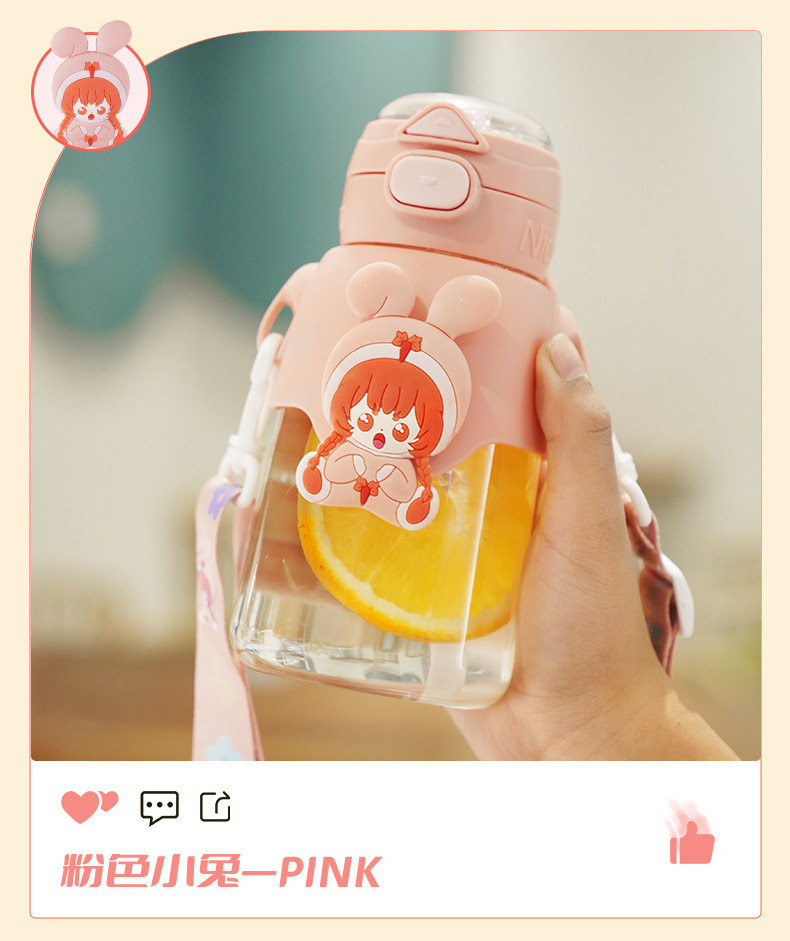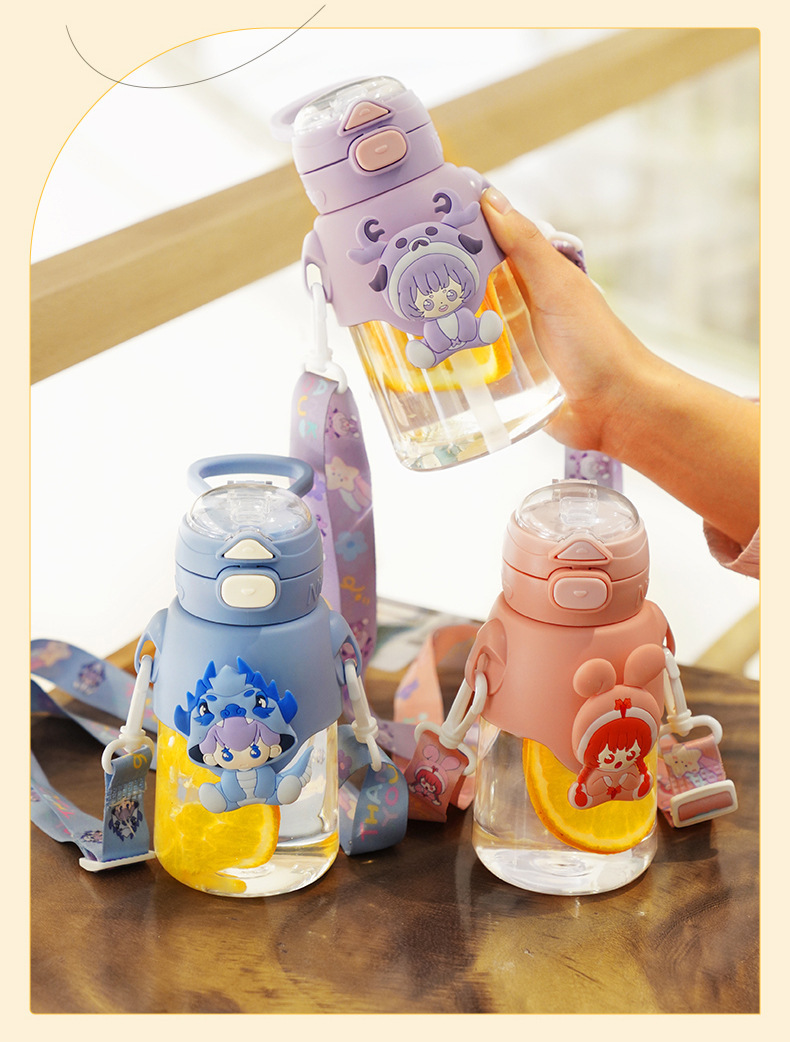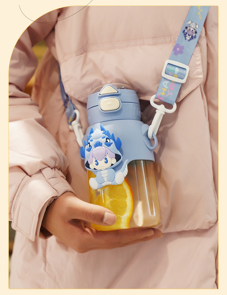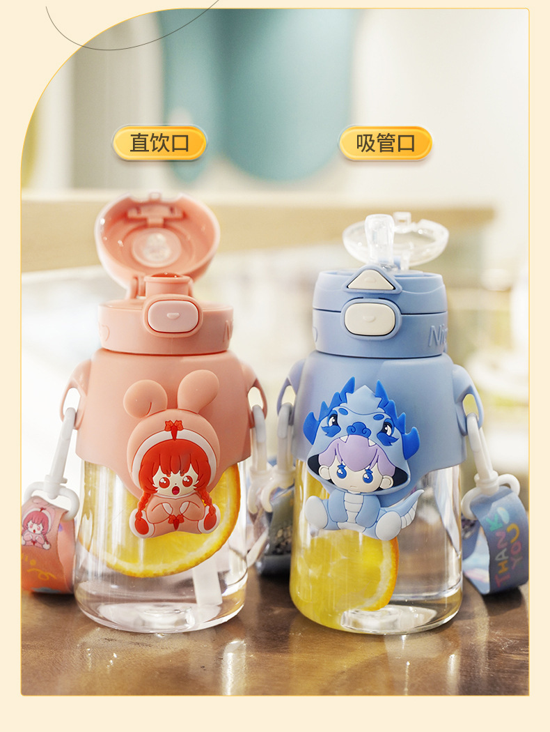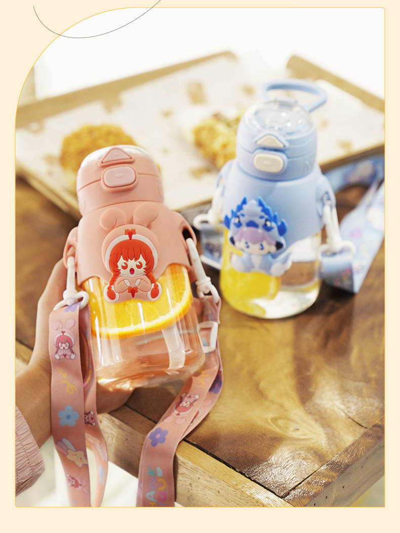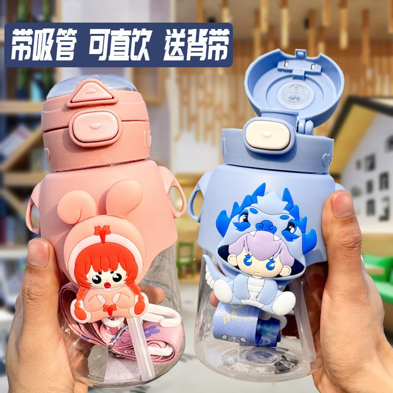 학생을 위한 새로운 여름 더블 드링킹 어린이 물컵, 편리한 대용량 키, 빨대 컵, 만화 소녀 컵스토어 가기
