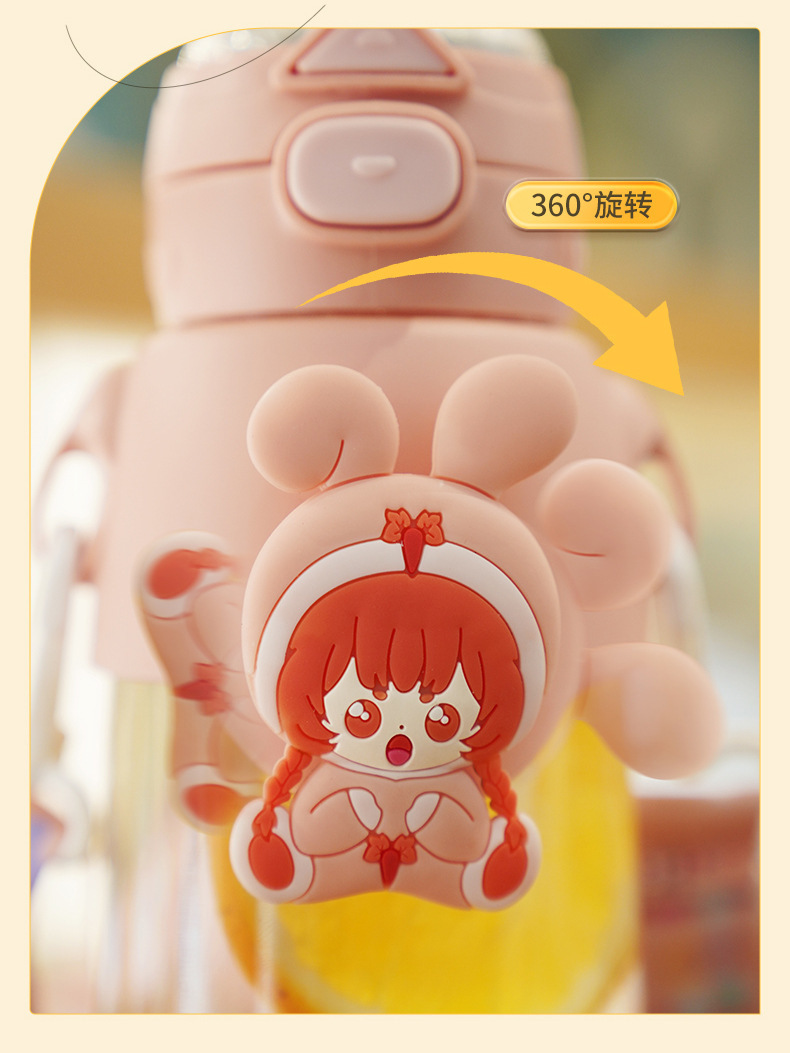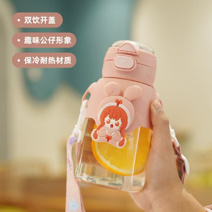 학생을 위한 새로운 여름 더블 드링킹 어린이 물컵, 편리한 대용량 키, 빨대 컵, 만화 소녀 컵