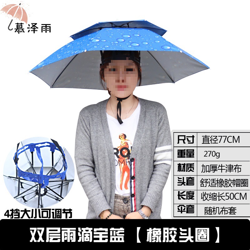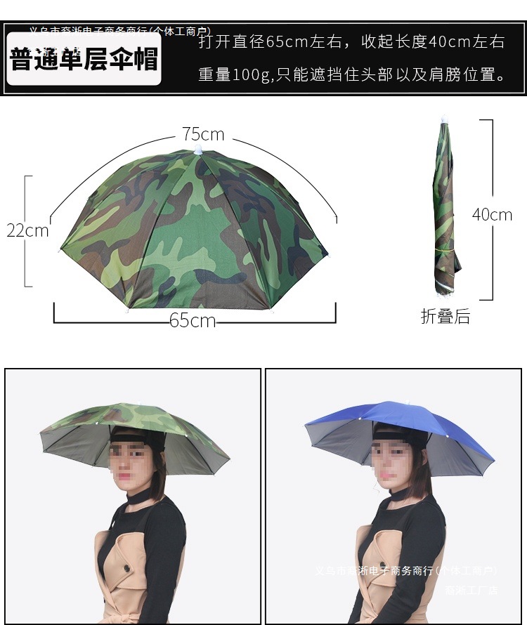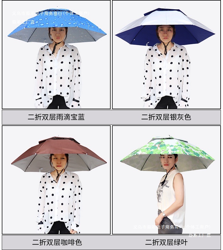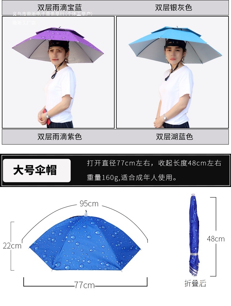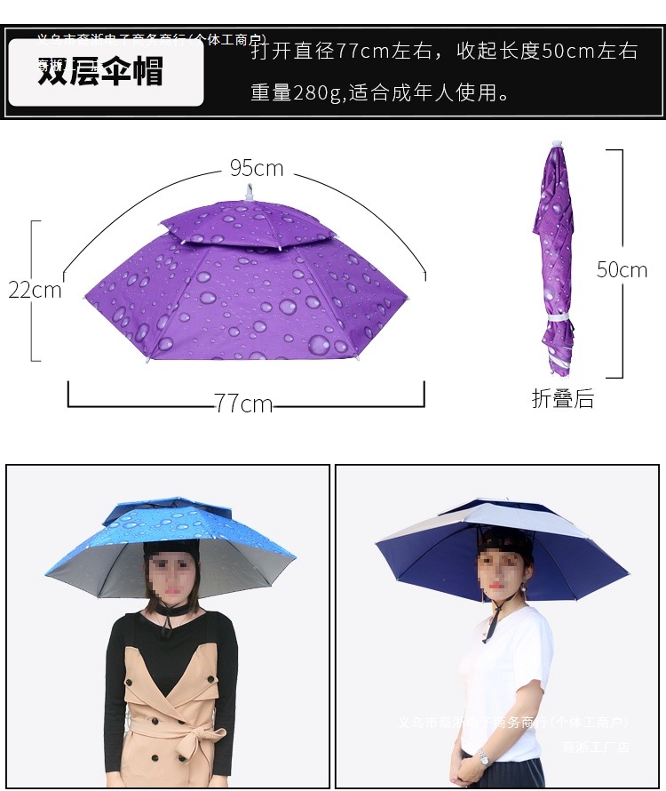 우산 모자 더블 레이어 헤드 장착형 오버헤드 밴드 모자 우산 태양 보호 접이식 야외 대형 낚시 우산 모자 없음스토어 가기