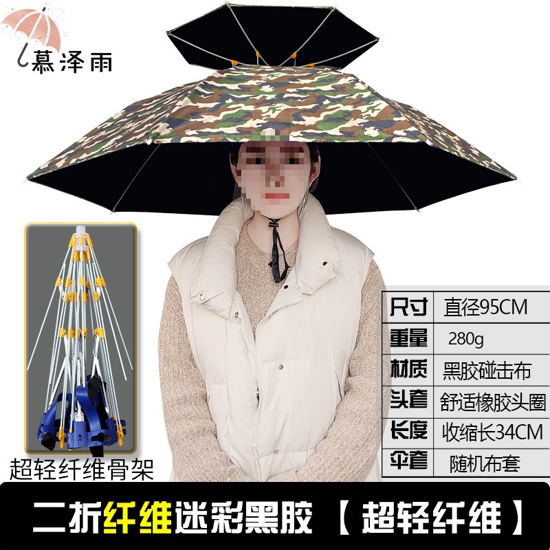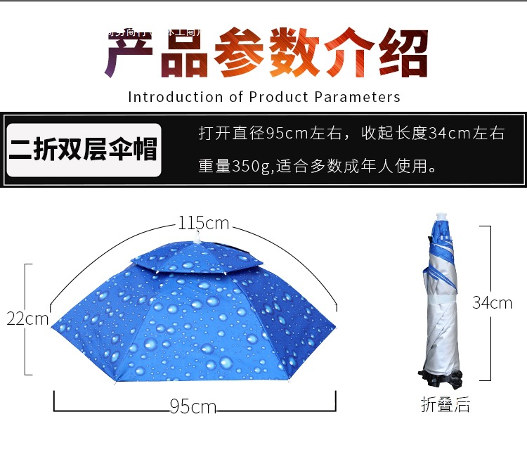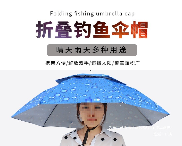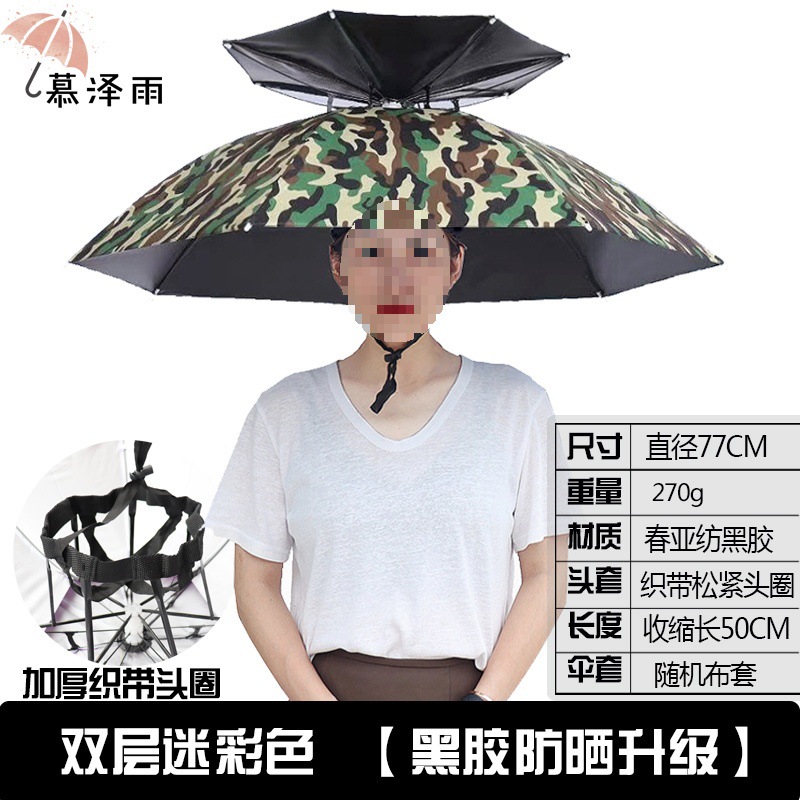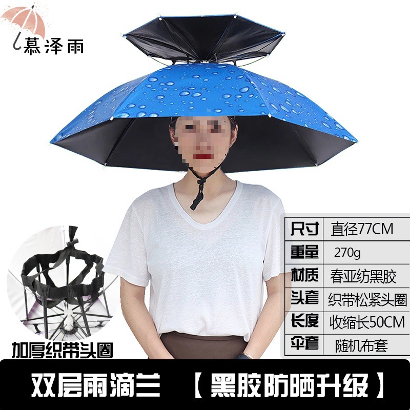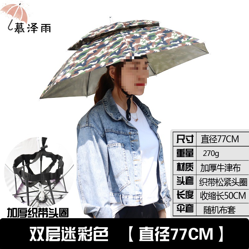 우산 모자 더블 레이어 헤드 장착형 오버헤드 밴드 모자 우산 태양 보호 접이식 야외 대형 낚시 우산 모자 없음스토어 가기