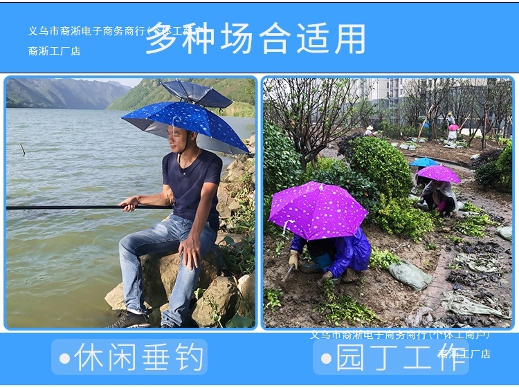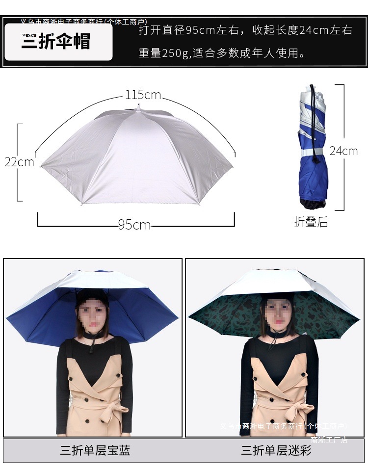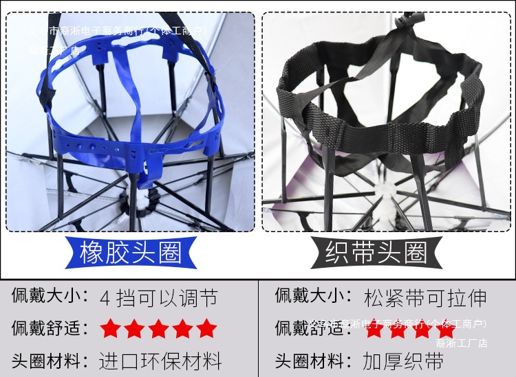우산 모자 더블 레이어 헤드 장착형 오버헤드 밴드 모자 우산 태양 보호 접이식 야외 대형 낚시 우산 모자 없음