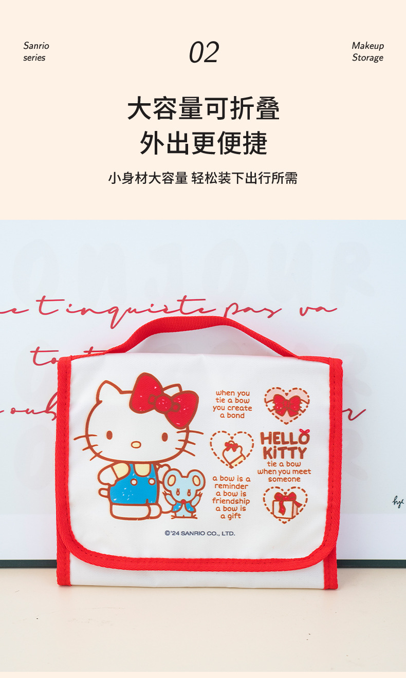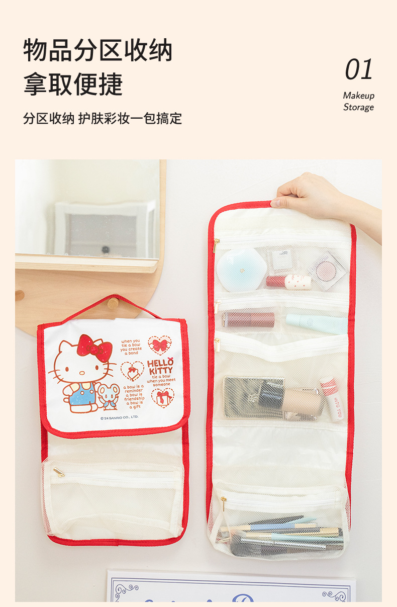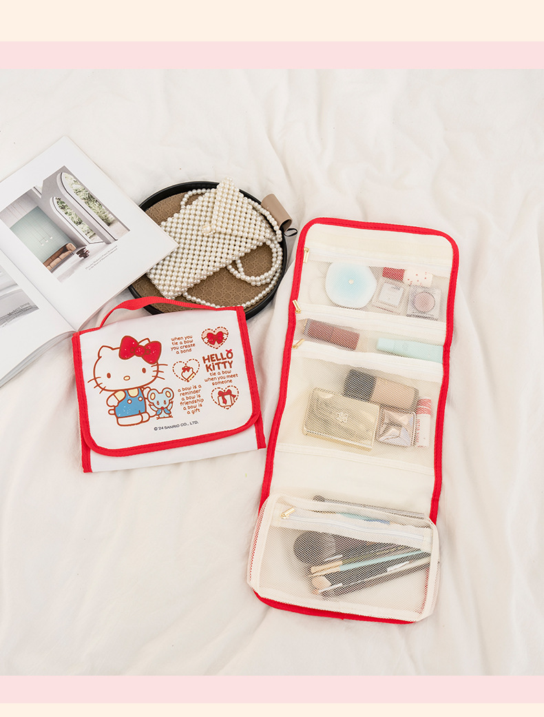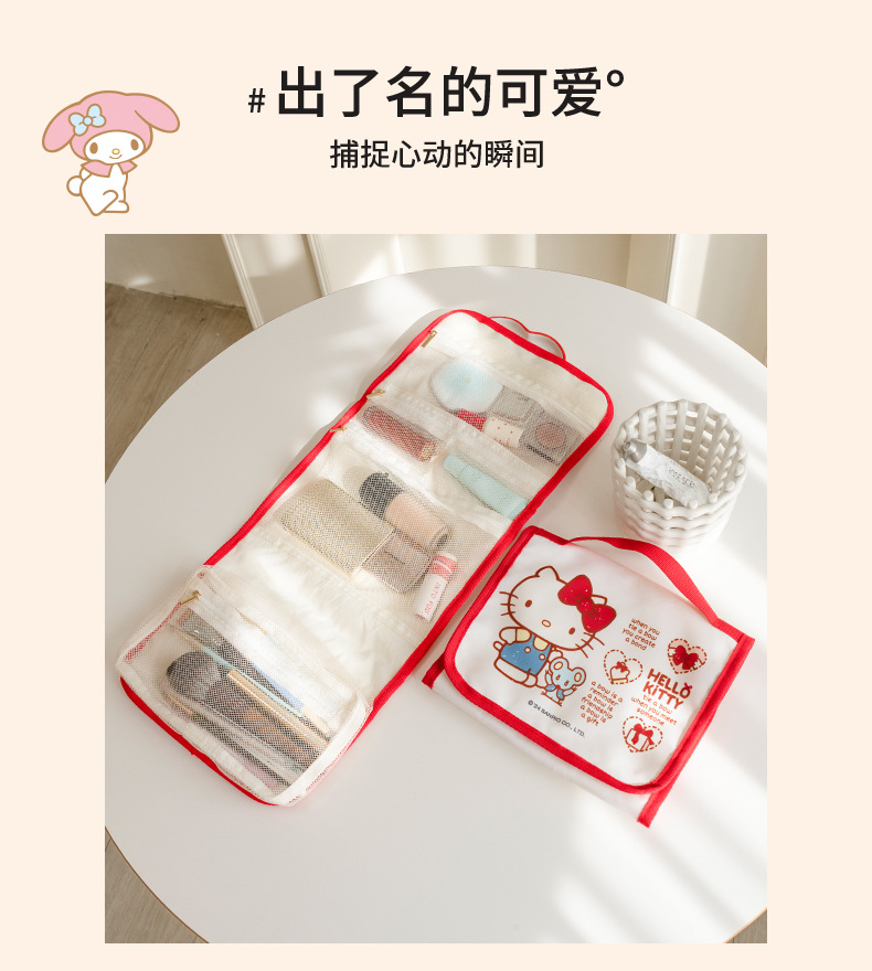 쉽게 사용할 수 있는 대용량 화장품 수납가방, 편리한 접이식 멀티백, 정리 및 분류, 작고 귀여운 산리오 방진