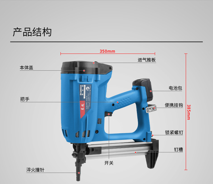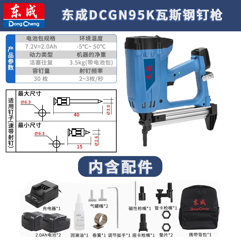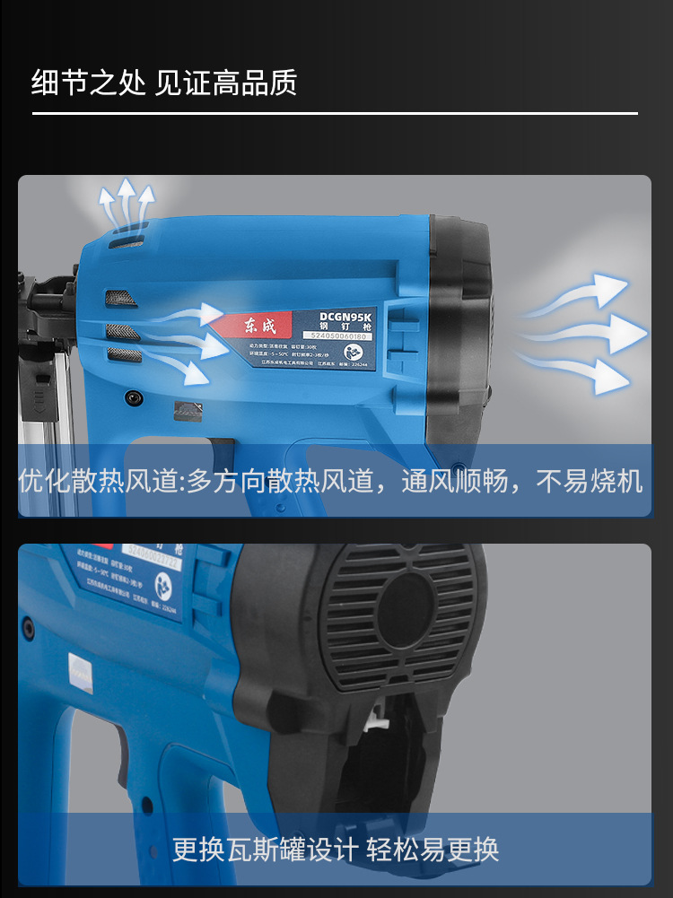 Dongcheng 공압 가스 스틸 네일 건, 고출력 천장 장치, 목공용 가스 구동 스틸 행 건