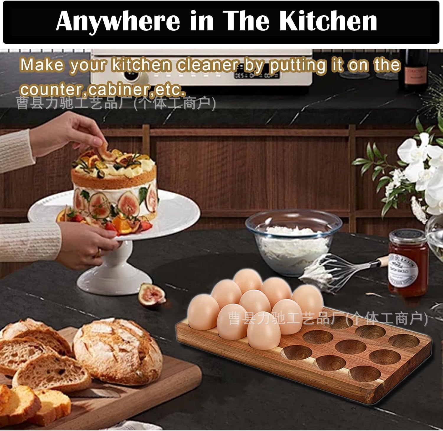 가정용 나무 칸막이 고정 계란 랙 나무 다중 칸막이 주방 냉장고 계란 트레이 단단한 나무 계란 보존 트레이