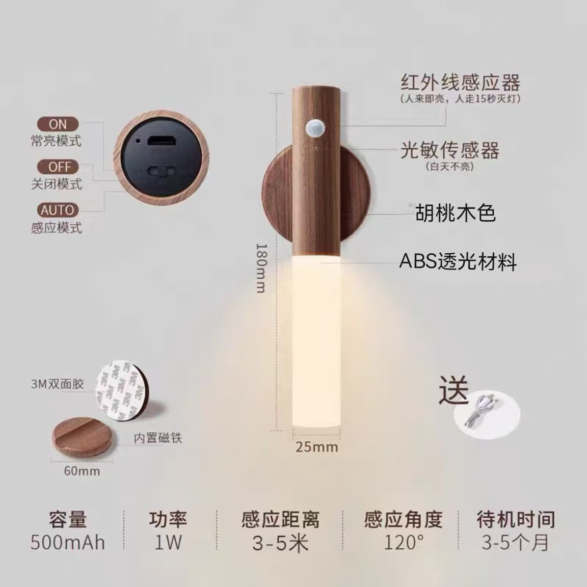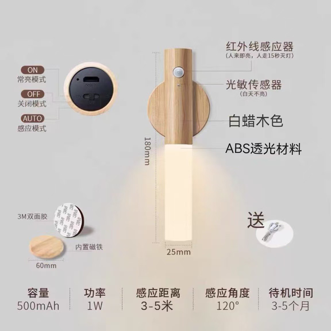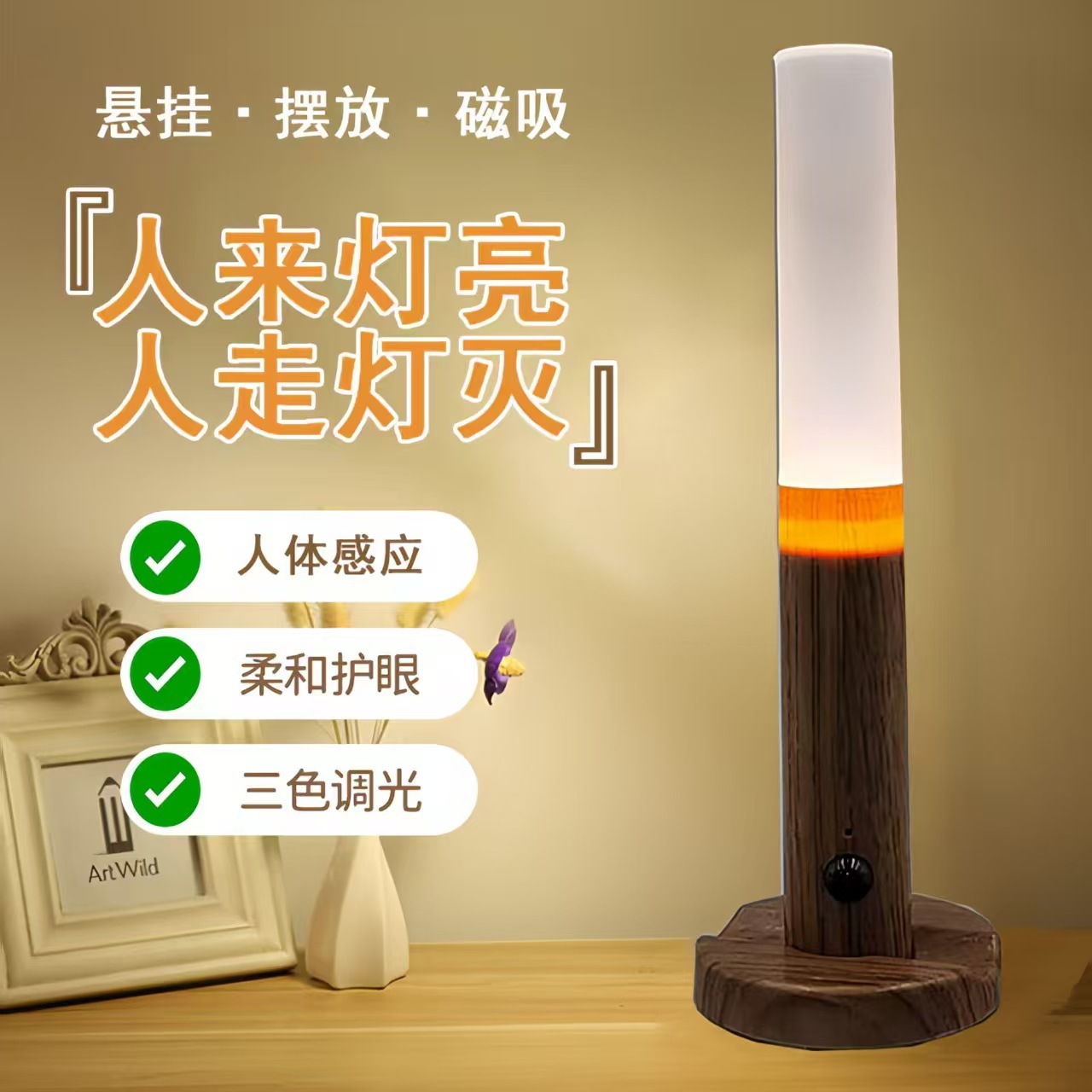 국경 간 새로운 인체 유도 램프 자기 야간 조명 분위기 램프 자체 접착 벽 램프 이중 목적 충전식 침대 옆 작은 테이블 램프