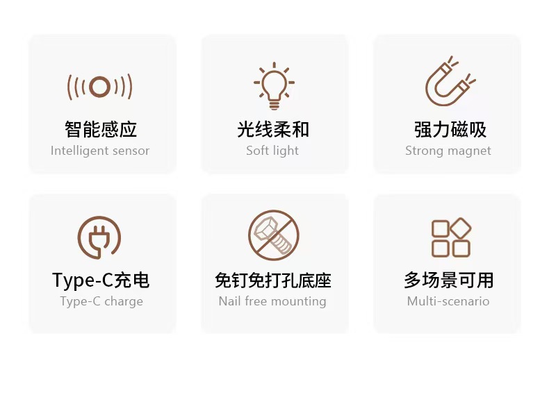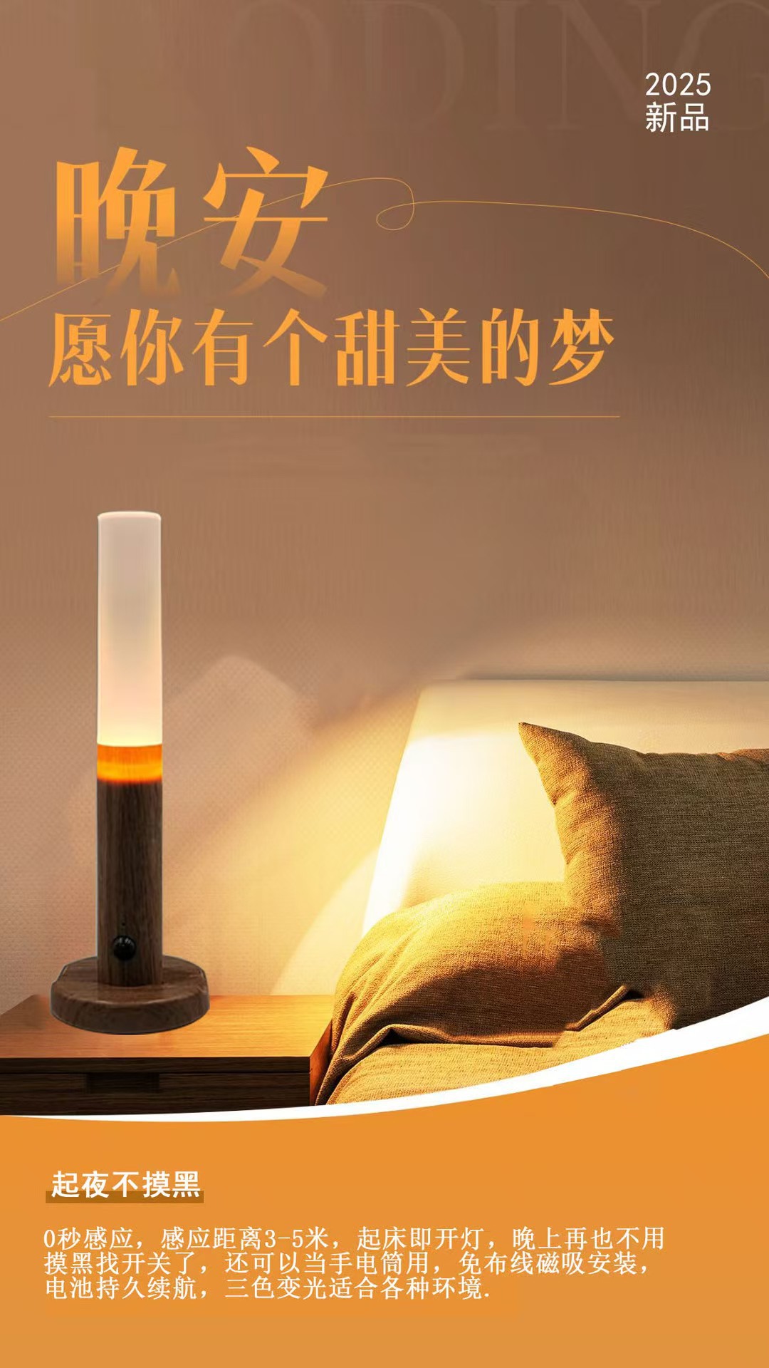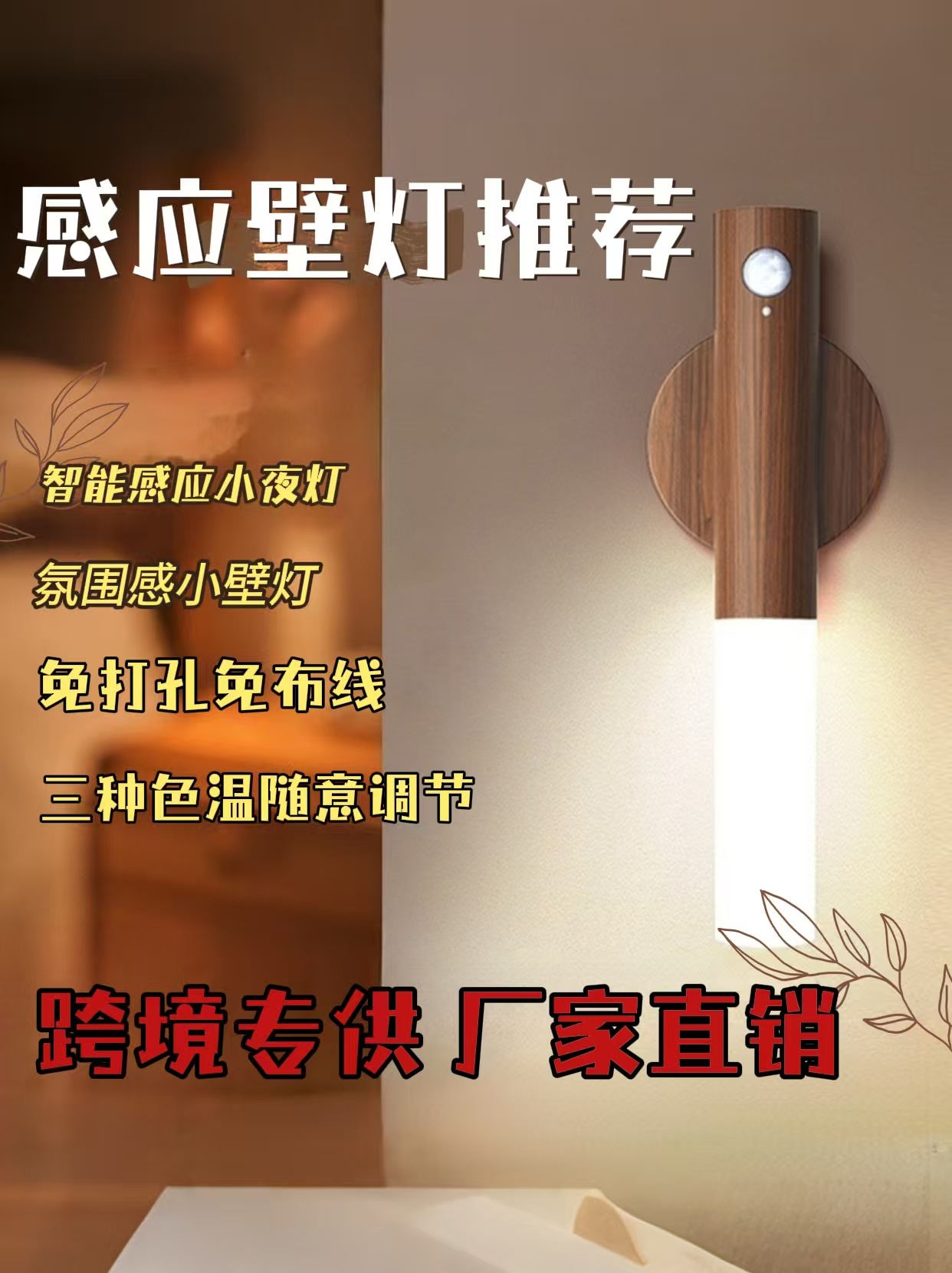 국경 간 새로운 인체 유도 램프 자기 야간 조명 분위기 램프 자체 접착 벽 램프 이중 목적 충전식 침대 옆 작은 테이블 램프