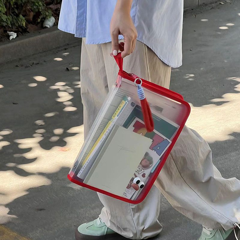 대용량 A4 도파민 투명 핸드백 지퍼 테스트 용지 교과서 보관 가방 학생 문서 가방 방수스토어 가기