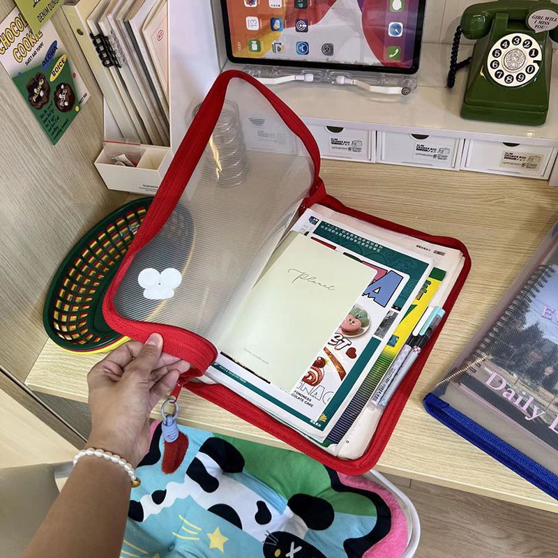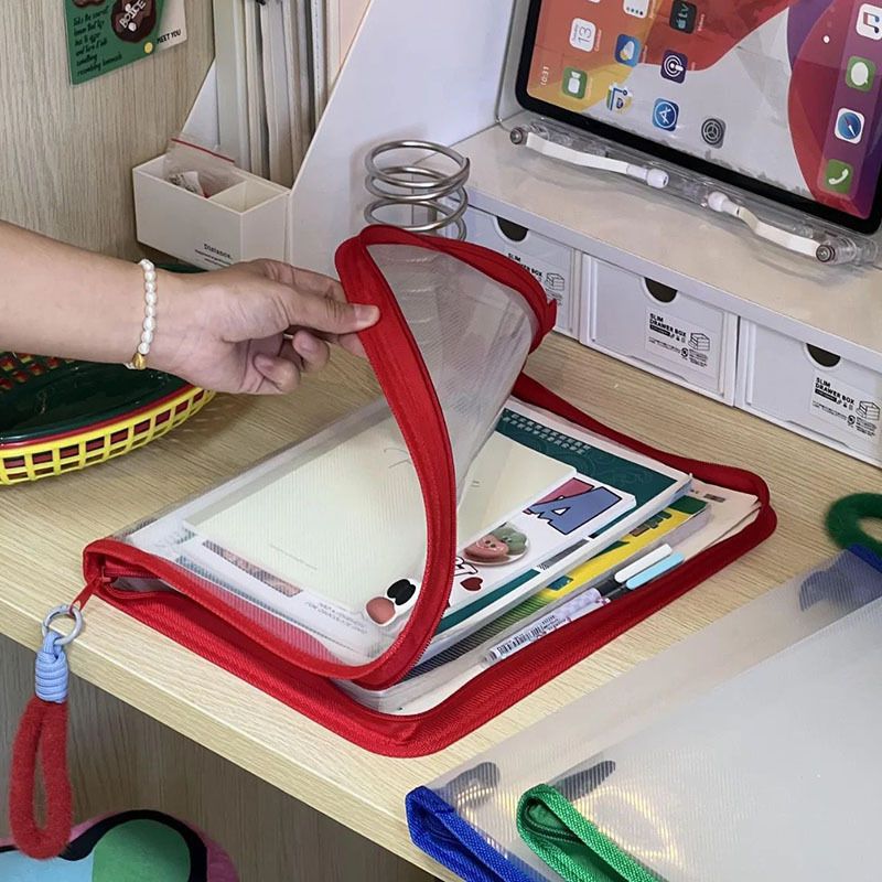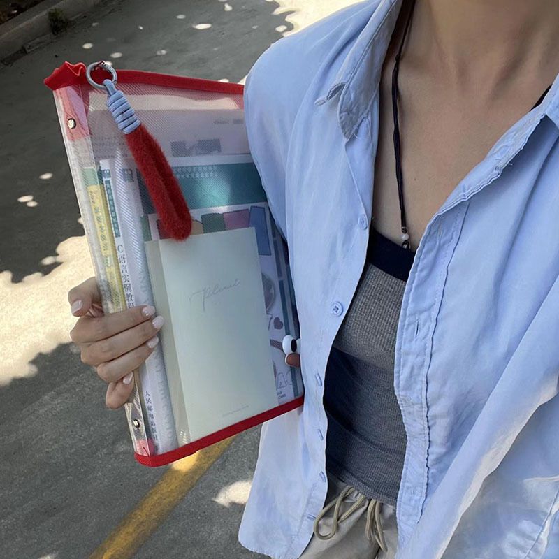대용량 A4 도파민 투명 핸드백 지퍼 테스트 용지 교과서 보관 가방 학생 문서 가방 방수