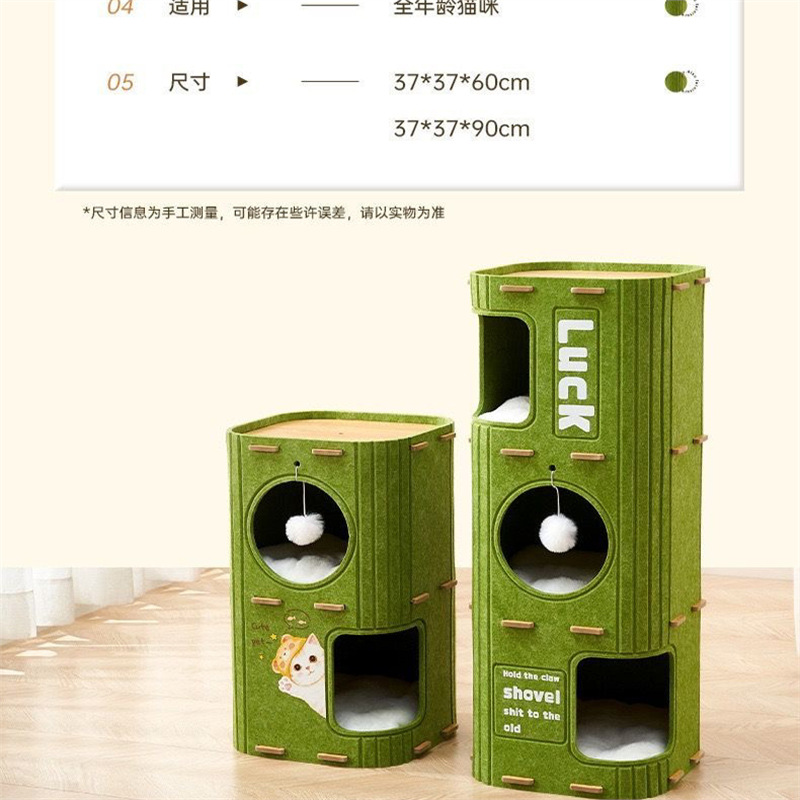 다층 고양이 둥지와 고양이 클라이밍 프레임이 하나로 통합되어 있으며, 겨울에는 따뜻하고 안전한 다층 밀폐형 고양이 수면 둥지, 긁힘 방지 펠트 보드스토어 가기