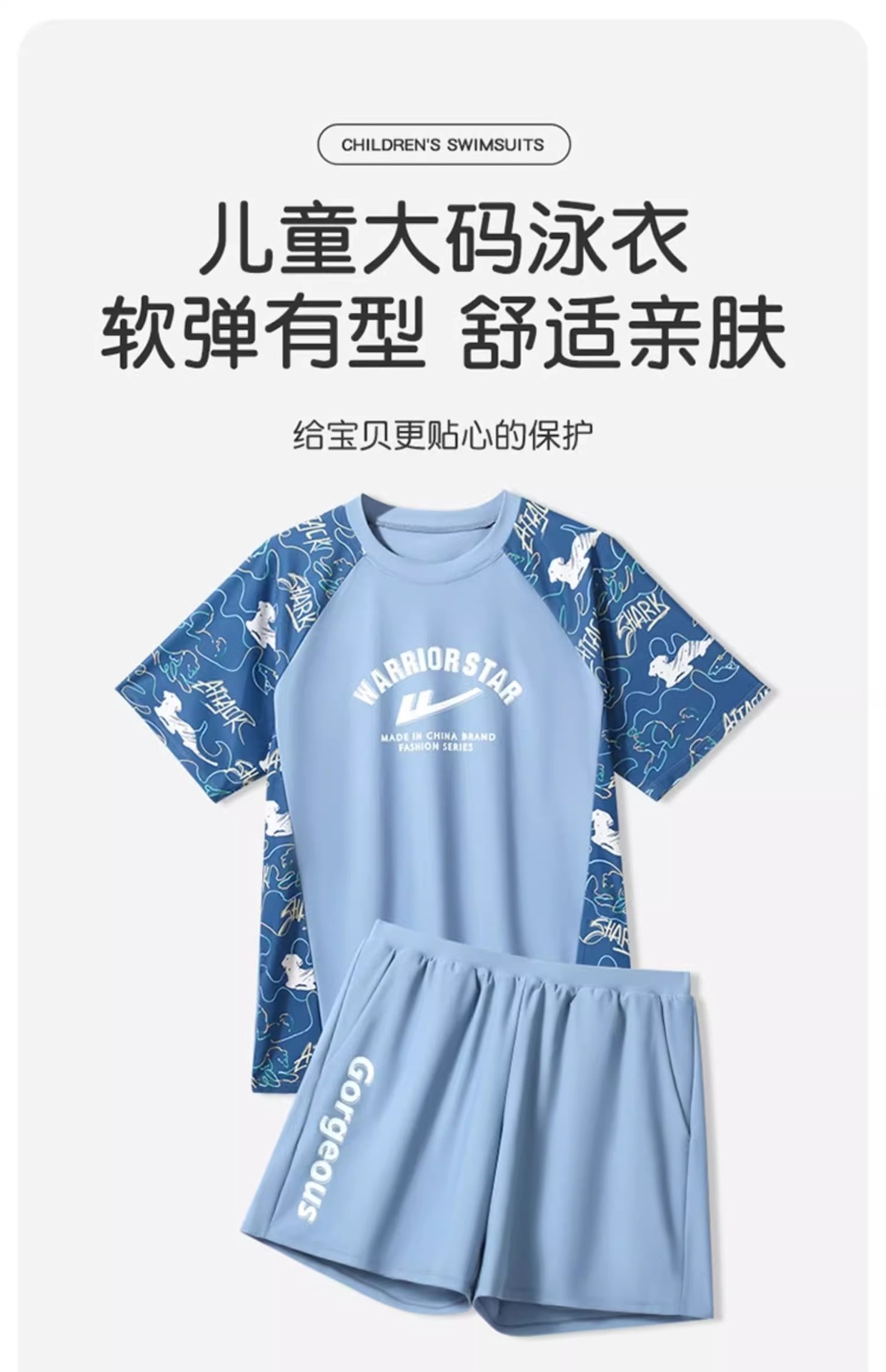 풀백 아동 수영복, 남아용 스플릿 자외선 차단, 뚱뚱한 남아, 중대형 아동 32.5-72.5kg 플러스 사이즈 학생 수영복스토어 가기